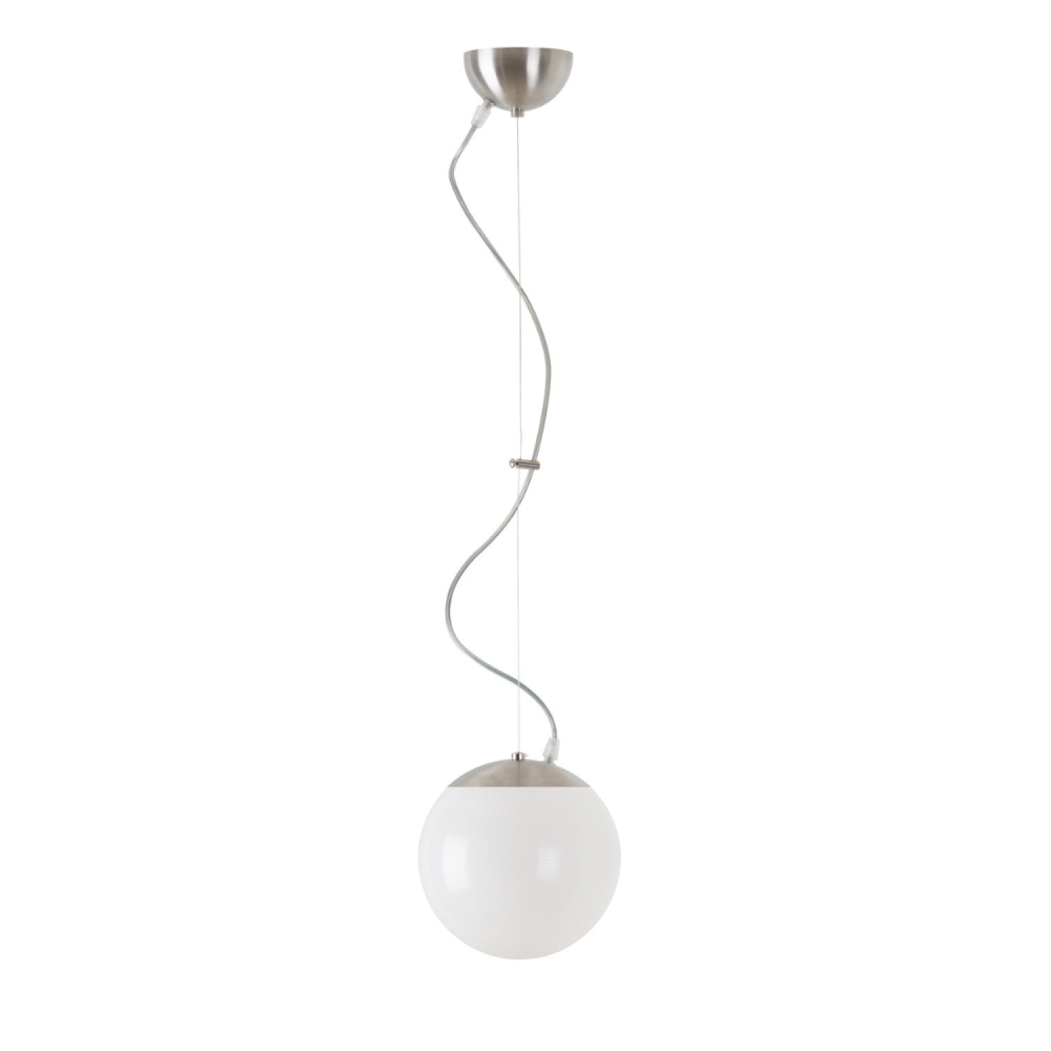 Kulaté závěsné svítidlo s průměrem stínidla Ø200 mm. Svítidlo se skládá z lankového závěsu a PMMA stínidla. Stínidlo je uchyceno ocelovým držákem. Svítidlo je vhodné do interiéru.