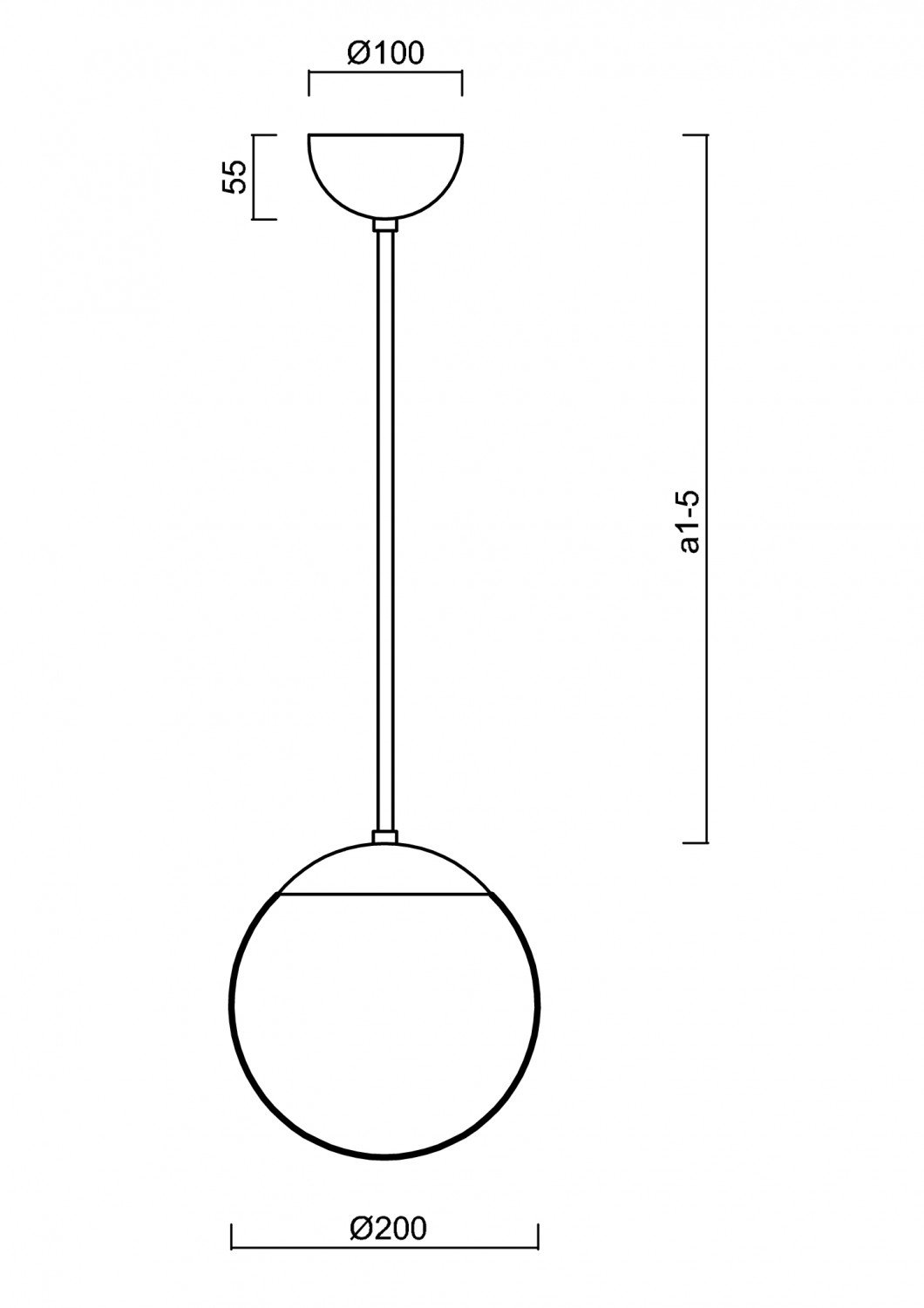 Kulaté závěsné svítidlo s průměrem stínidla Ø200 mm. Svítidlo se skládá z tyčového závěsu a PMMA stínidla. Stínidlo je uchyceno ocelovým držákem. Svítidlo je vhodné do interiéru.