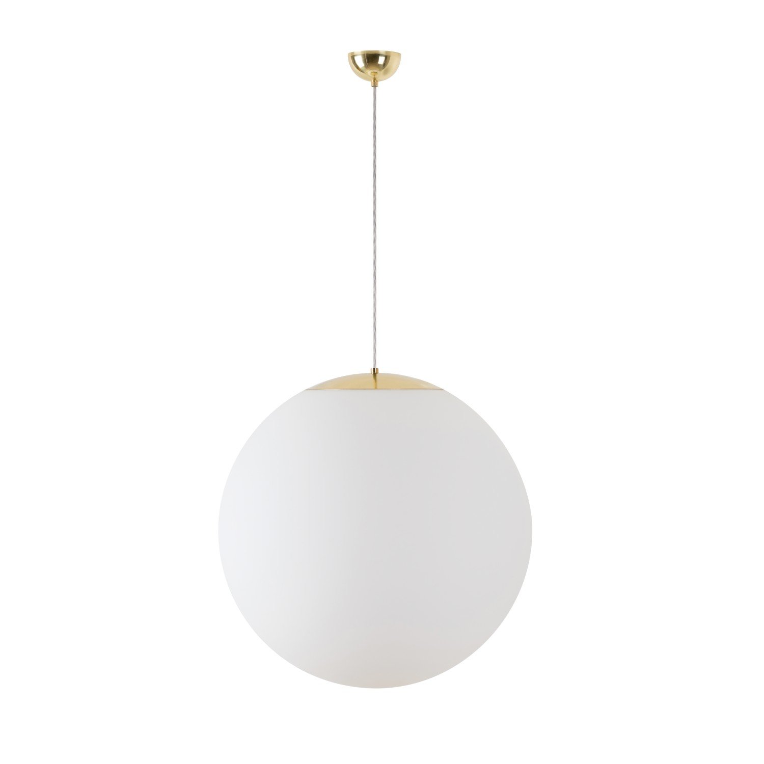 Mosazné závěsné žárovkové svítidlo ON/OFF a matované PMMA stínidlo. Kabelový závěs s vnitřním nosným lankem o délce 100 cm.