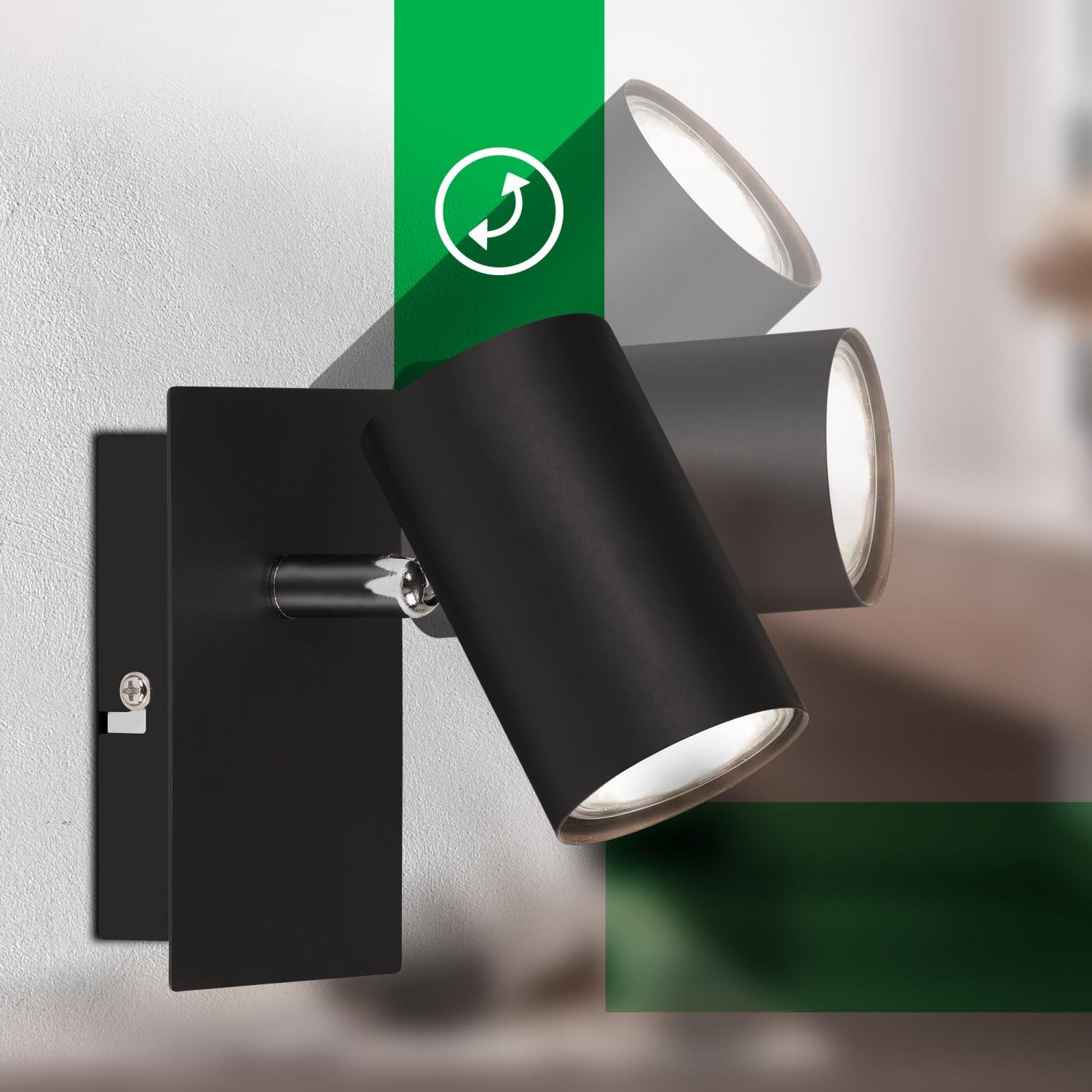 Hlavice svítidla je plně nastavitelná – lze ji otáčet i naklápět. Díky tomu snadno nasměrujete světlo přesně tam, kde je potřeba – ať už vytváříte akcentní nasvícení uměleckého díla, nebo potřebujete praktické osvětlení do čtecího koutku.