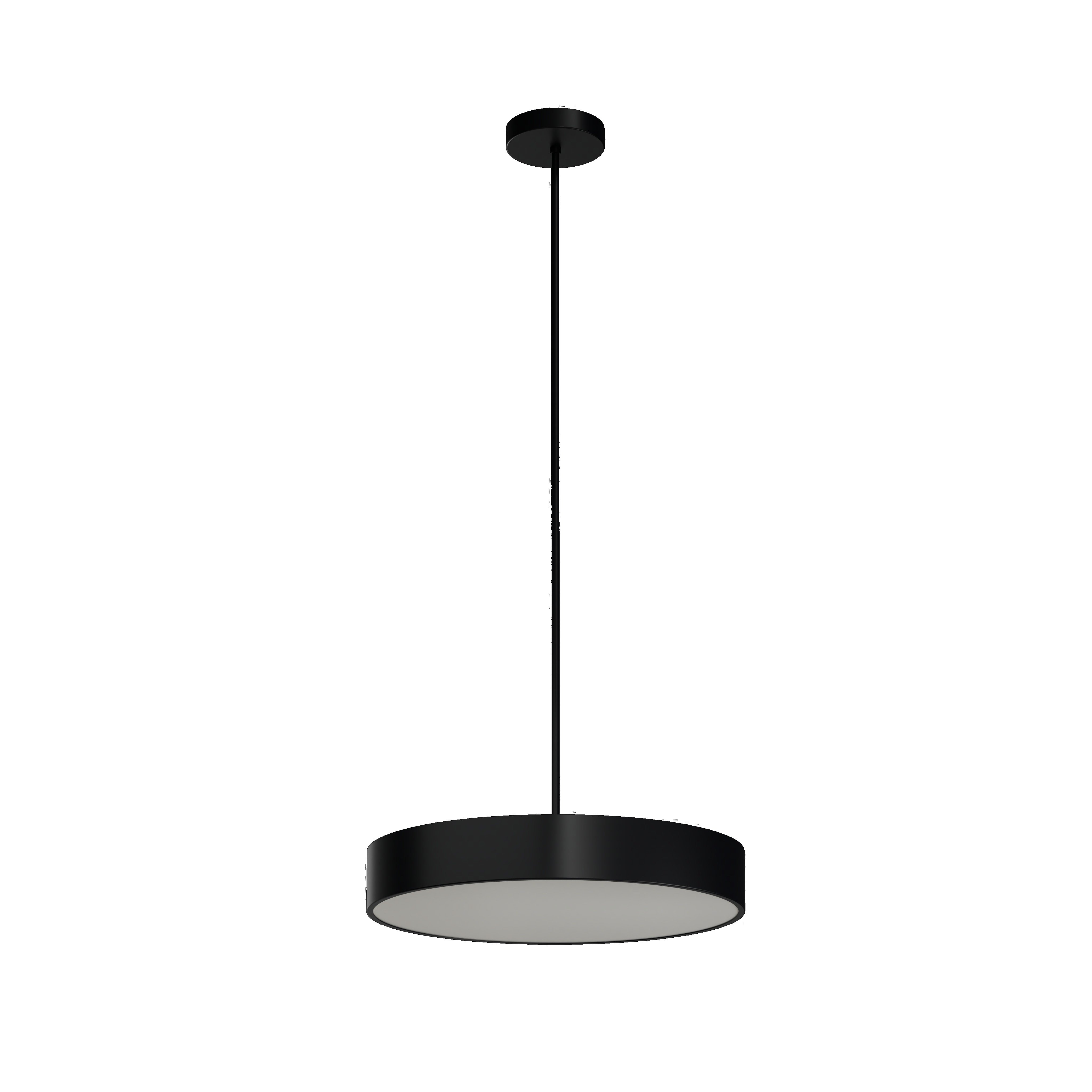 Černé závěsné LED svítidlo ON/OFF s multipower funkcí a opálové prismatické stínidlo s dekorativním límcem. Tyčový závěs o délce 100 cm.