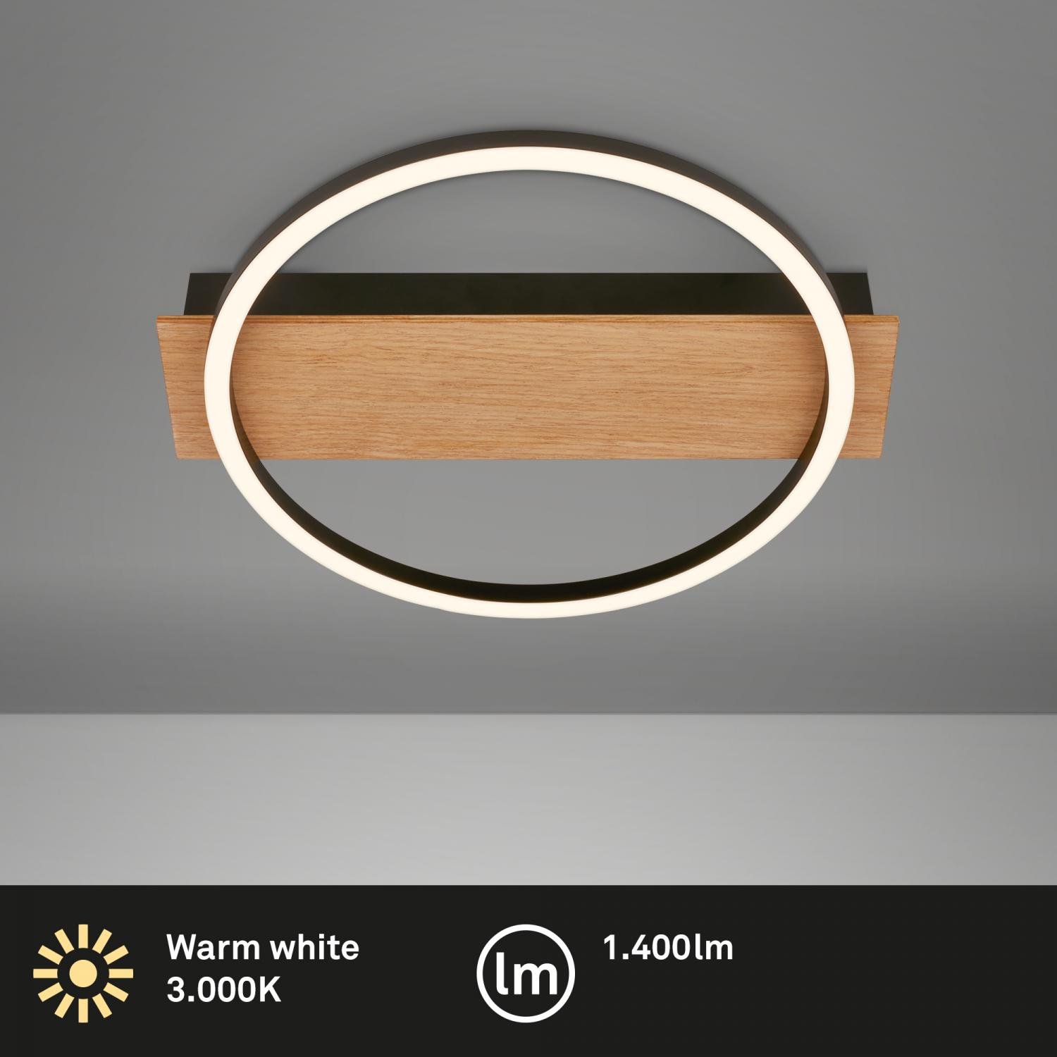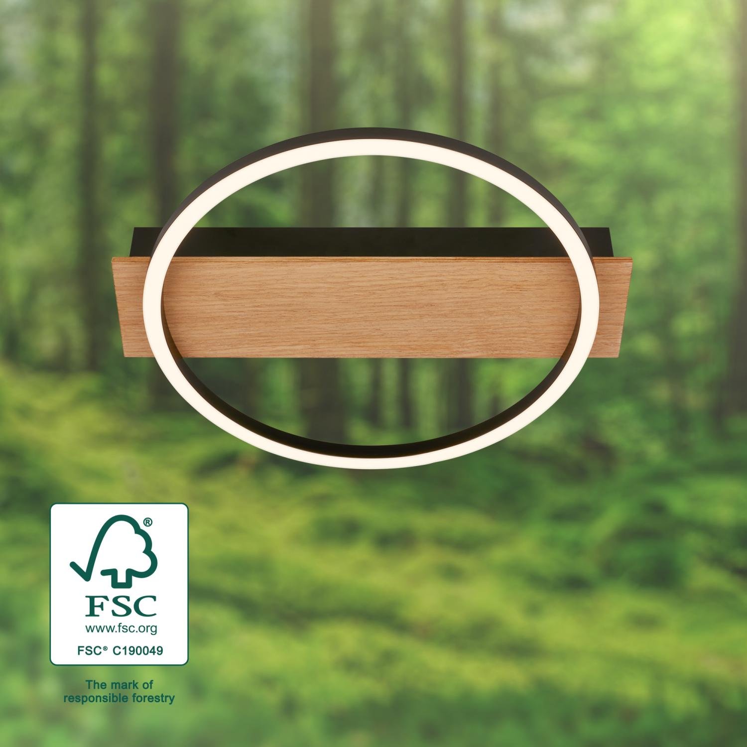 Kada LED stropní svítidlo, dekor dřeva, teple bílé světlo, oválné 34x30 cm, černá/dřevo – BRILO
