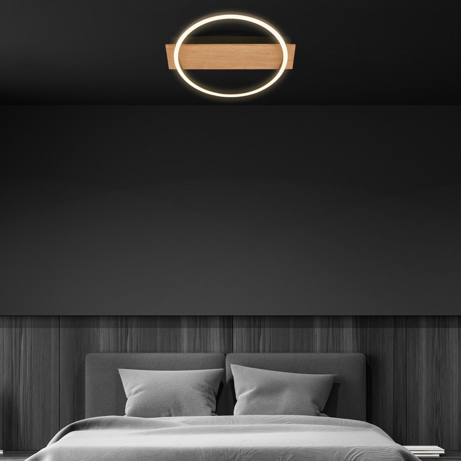 Kada LED stropní svítidlo, dekor dřeva, teple bílé světlo, oválné 34x30 cm, černá/dřevo - BRILO