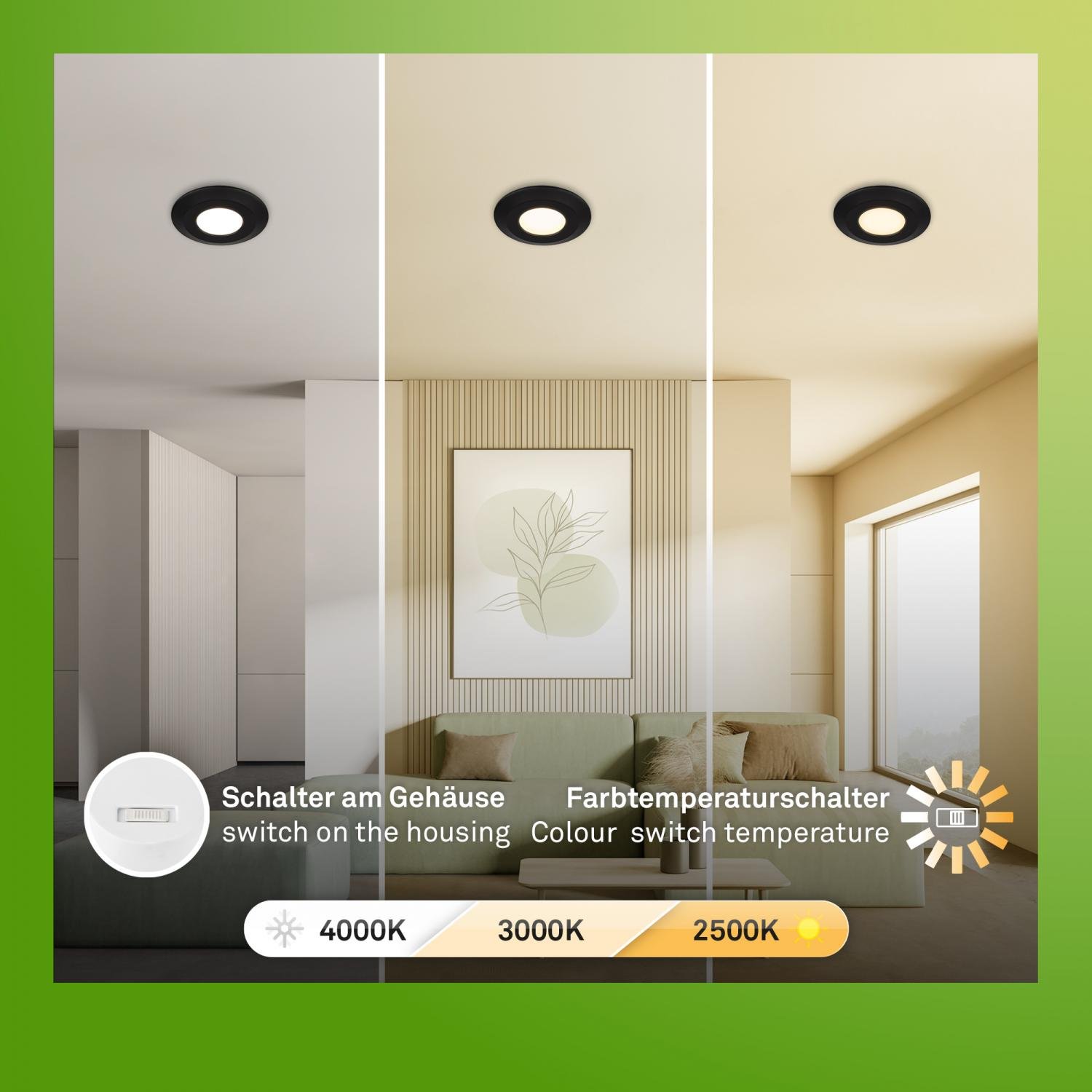 Klira 3ks sada vestavných bodových svítidel do koupelny 230V, CTS vypínač, IP44, černá - BRILONER