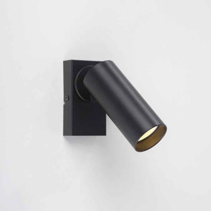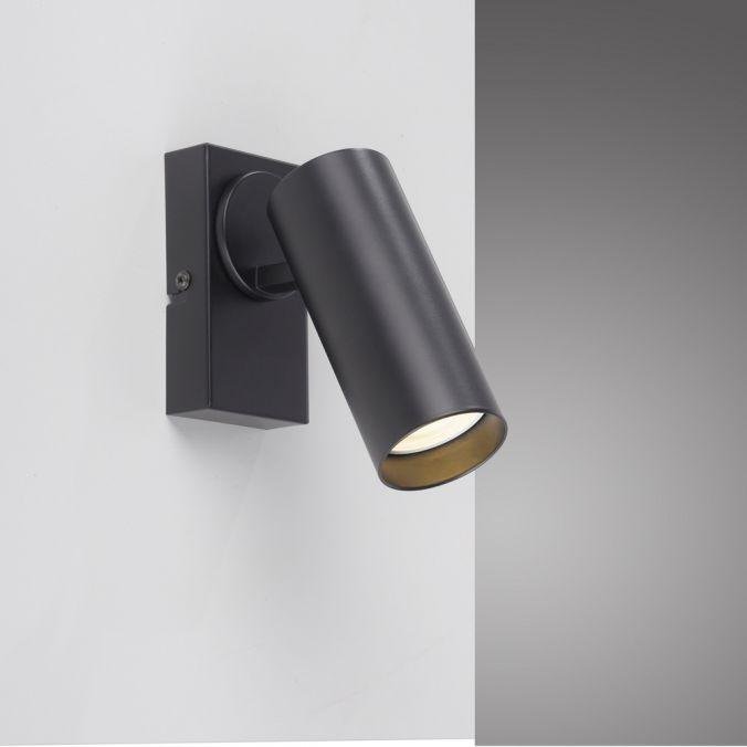 Svítidlo je vyrobeno z hliníku v matné černé barvě. Válcové tělo spotu navazuje na hranatou základnu, což podtrhuje jeho minimalistický a nadčasový charakter. Konstrukce umožňuje otáčení a naklápění, takže lze světelný paprsek přesně nasměrovat podle potřeb prostoru.