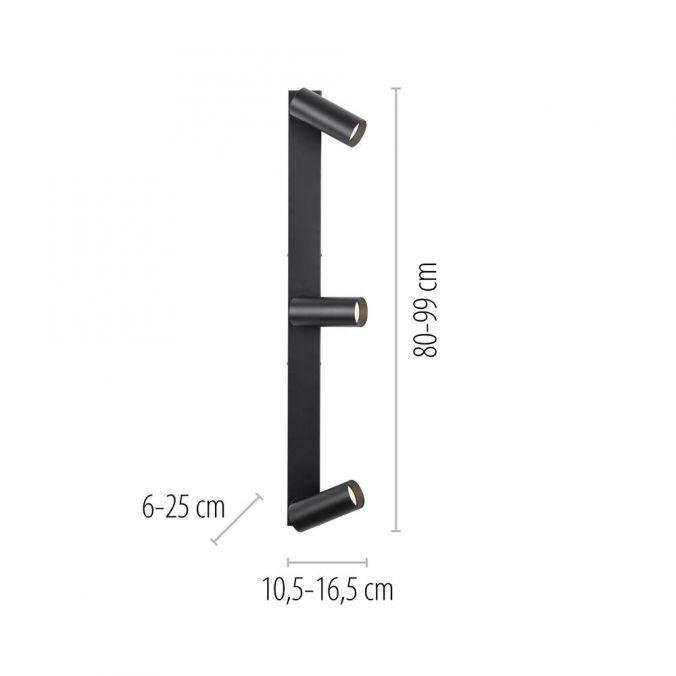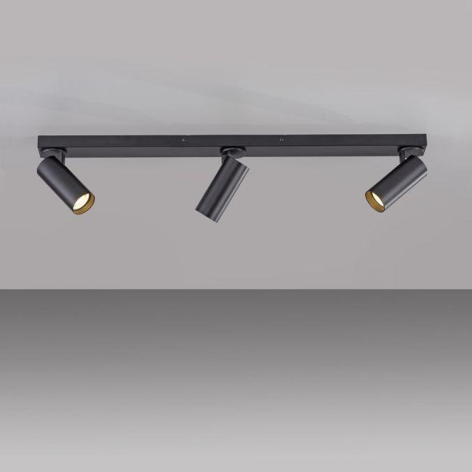 Svítidlo je tvořeno podlouhlou lištou v černé barvě, na které jsou umístěny tři válcové otočné spoty. Hlavním materiálem je hliník, což zajišťuje odolnost a čistý technický vzhled. Minimalistický design umožňuje začlenění do současných interiérů, kde je kladen důraz na funkčnost a jednoduchost.