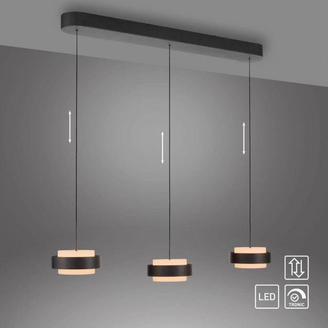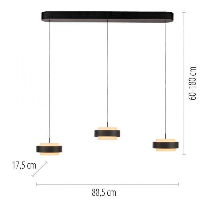 LED závěsné svítidlo ELMO černá, 3000K – tříramenné svítidlo s výškovým nastavením