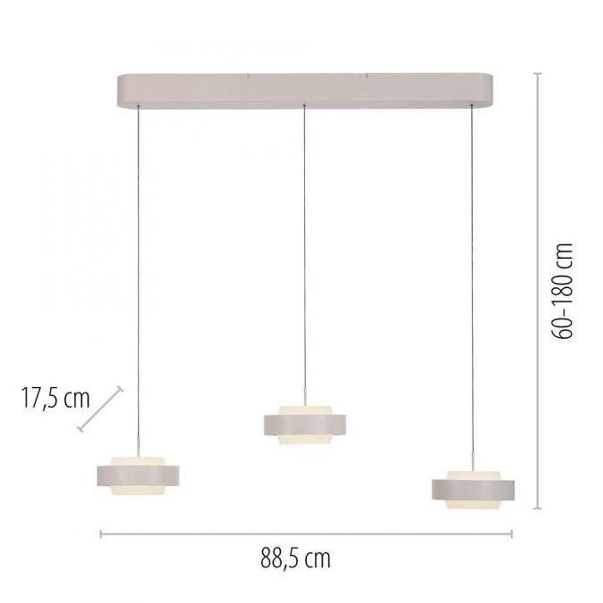 LED závěsné svítidlo ELMO, písková barva, 3000K, výškově stavitelnéTříramenné závěsné svítidlo ELMO z kolekce Schöner Wohnen nabízí příjemné teplé bílé světlo a je určeno… Více