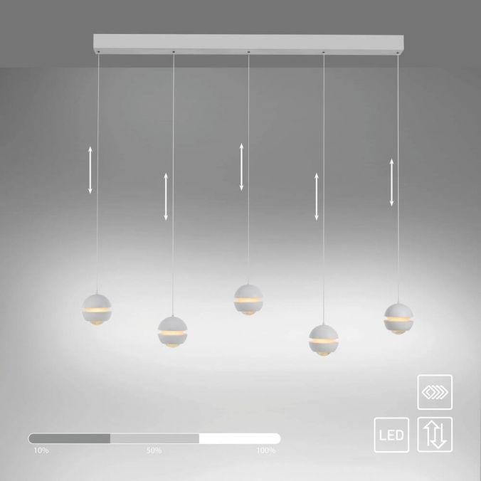 Kolekce Schöner Wohnen LED závěsné svítidlo LINI, bílá, 5-ramenné, nastavitelná výška, krokově stmívatelné, 3000K - JUST LIGHT