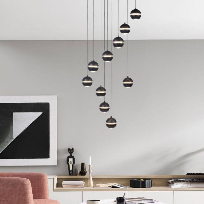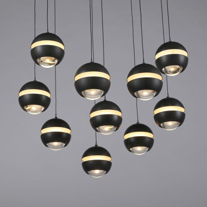 LED závěsné svítidlo LINI, 10-ramenné, černé, stmívatelné, 3000K