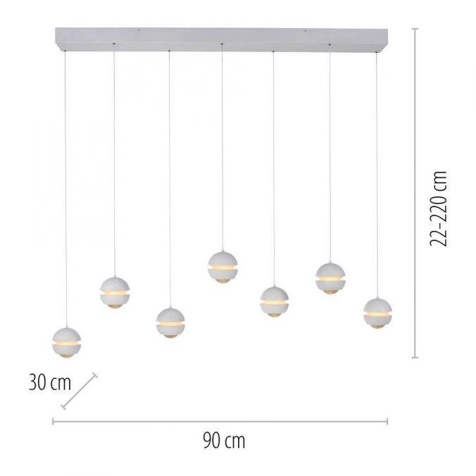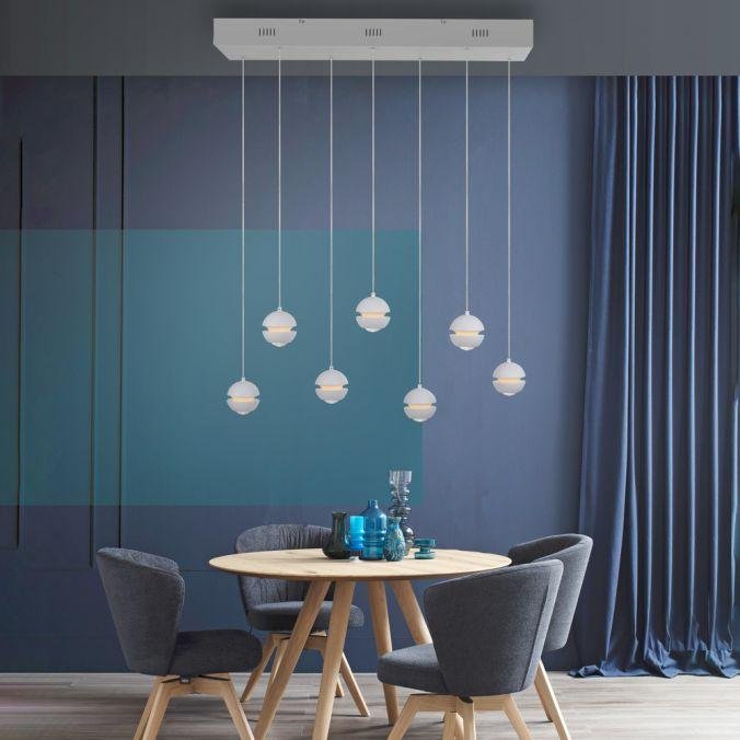 LED závěsné svítidlo LINI, 7-ramenné, bílá, stmívatelné, 3000K
