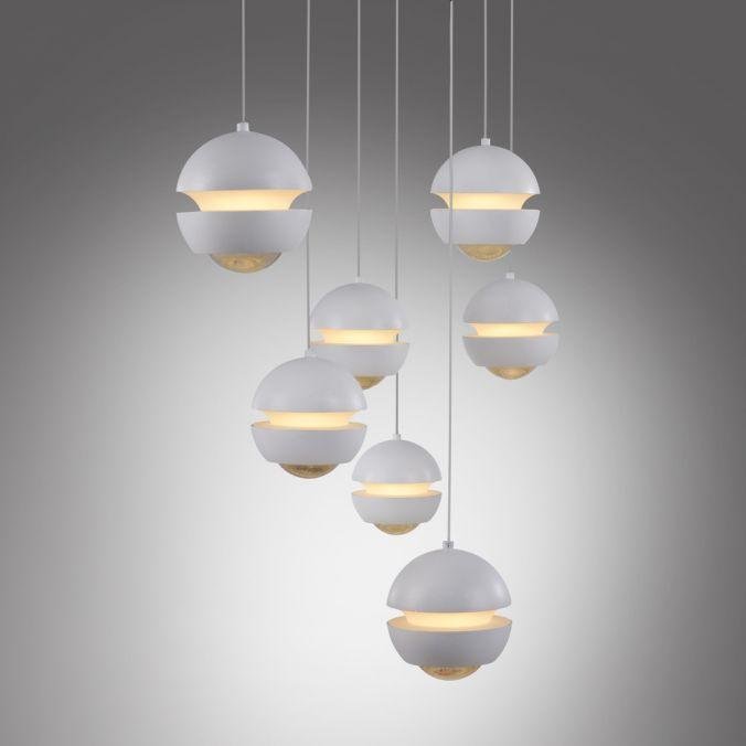 Svítidlo je tvořeno sedmi závěsnými rameny s kulovými difuzory v bílé barvě, zavěšenými na podlouhlé stropní základně. Kombinace kovu a plastu zajišťuje odolnost a čistý vzhled. Minimalistický tvar a neutrální barevnost podporují začlenění do moderních i klasičtějších interiérů. Každé rameno lze výškově nastavit pomocí manuálního systému Comfort Lift, což umožňuje individuální kompozici a přizpůsobení různým typům prostor.