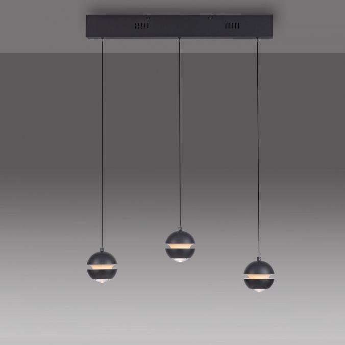 LED závěsné svítidlo LINI, 3-ramenné, černé, výškově stavitelné, stmívatelné, 3000K