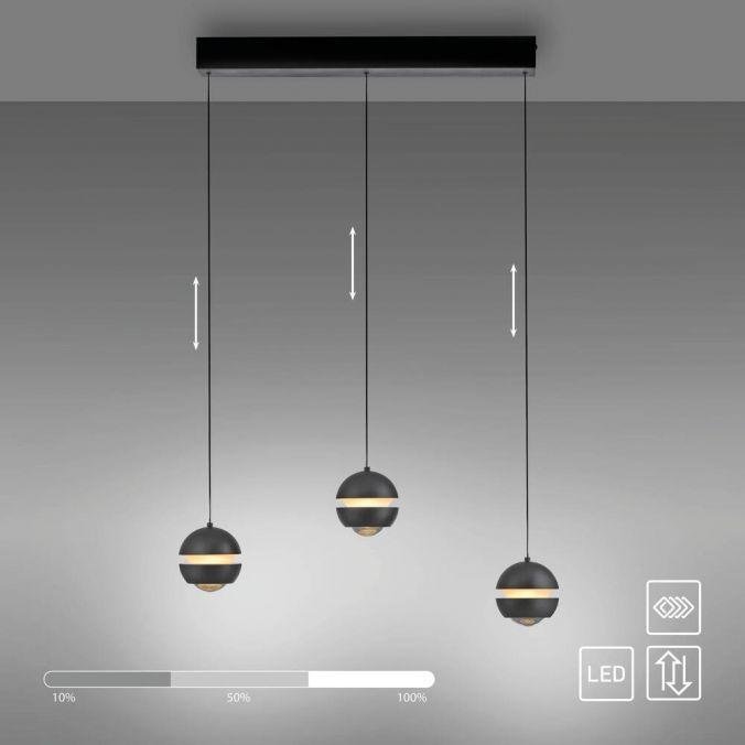 Kolekce Schöner Wohnen LED závěsné svítidlo, černá, 3-ramenné, Comfort Lift, krokově stmívatelné, 3000K - JUST LIGHT