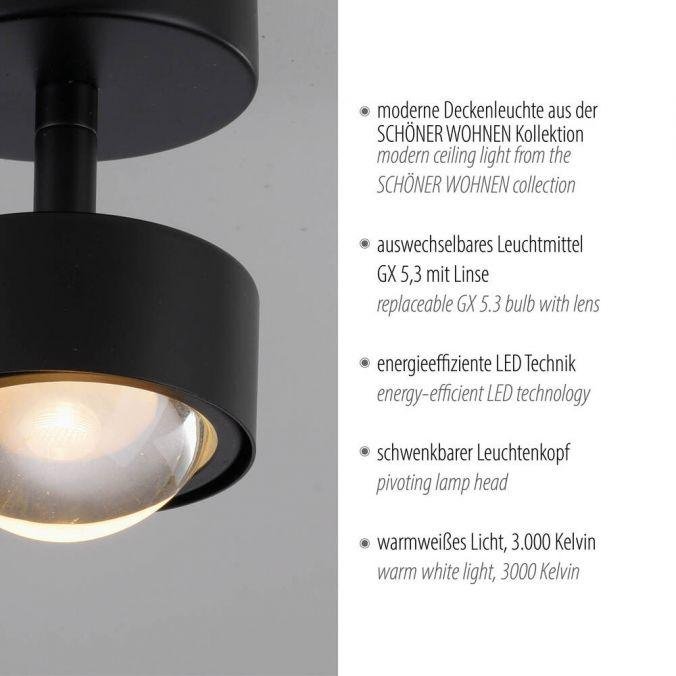 Kolekce Schöner Wohnen stropní svítidlo bodové svítidlo KULU, černá, 1-ramenné, nastavitelné a otočné, 3000K - JUST LIGHT