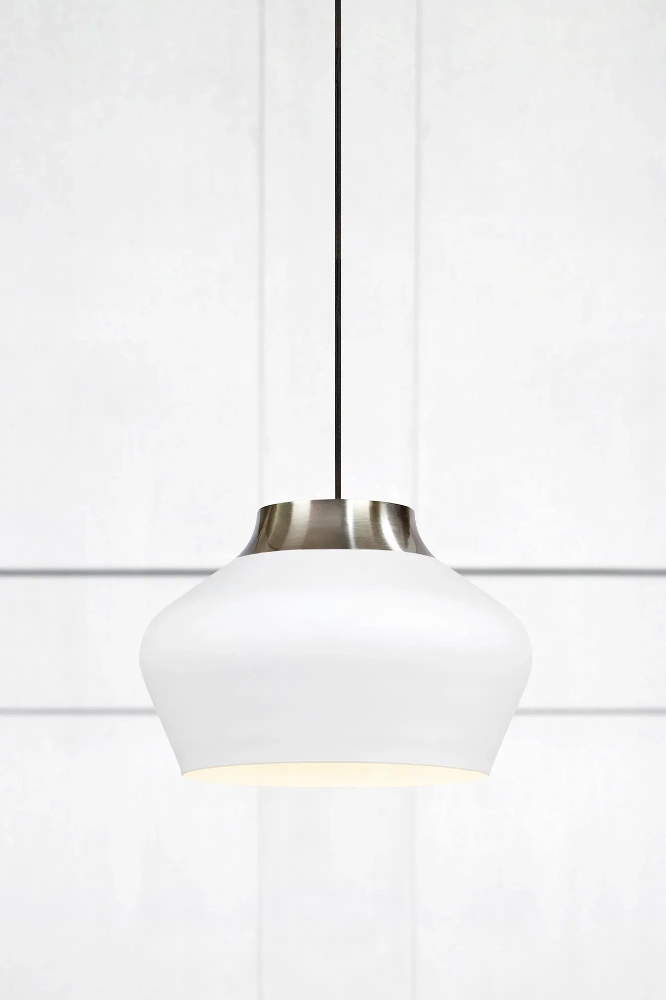 Závěsné svítidlo Markslöjd Kom v bílé barvě je elegantní volbou pro milovníky nadčasového skandinávského designu s retro nádechem. Tvarované kovové stínidlo o průměru 31 cm a decentní detaily z oceli propůjčují tomuto svítidlu osobitý styl, který perfektně zapadne do moderních i klasických interiérů. Za návrhem stojí renomovaná designérka Monika Mulder.