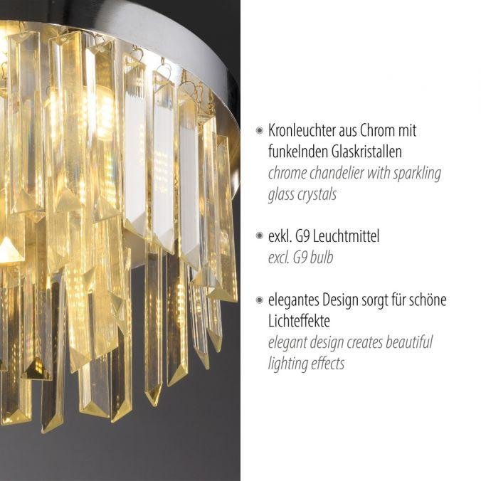 • Materiál: Chromovaný kov, křišťálové závěsy