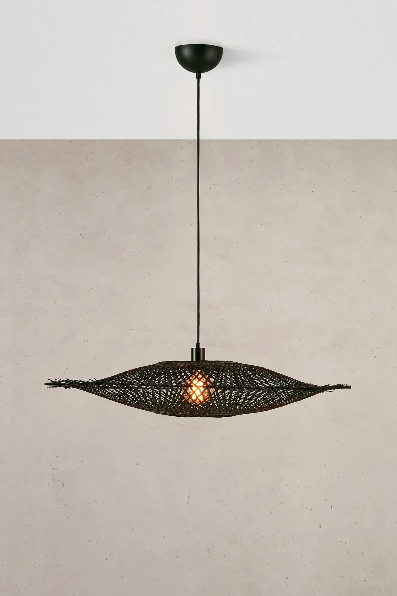 Závěsné svítidlo Markslöjd Kumo vyniká svým velkolepým průměrem 92 cm a unikátním ručně tkaným stínidlem z matně černého bambusu. Každý kus je originál – díky ručnímu zpracování získává svítidlo nezaměnitelný rustikální vzhled s moderním nádechem. Přirozená struktura bambusu krásně rozptyluje světlo a vytváří útulnou atmosféru v každém prostoru.