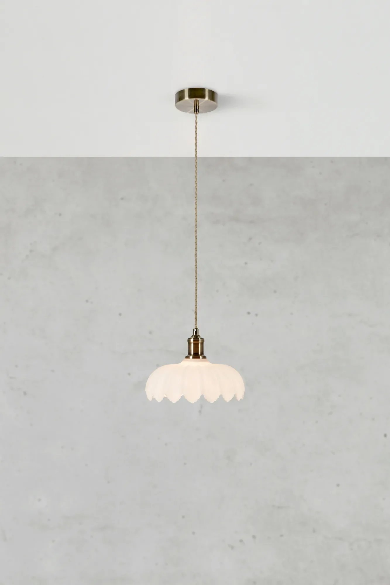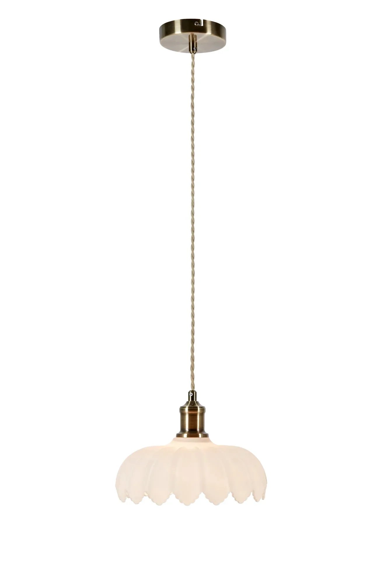 Závěsné svítidlo Markslöjd Kurage je ztělesněním moderní elegance s jemným nádechem retro stylu. Kombinuje matné bílé sklo s vlnitými liniemi, které vytváří měkké a rozptýlené světlo, ideální pro atmosférické osvětlení nad jídelním stolem, v kuchyni nebo v obývacím pokoji. Mosazná objímka, dekorativní béžový textilní kabel a stropní montura z kovu v mosazném odstínu podtrhují nadčasový design svítidla a zároveň slibují vysokou kvalitu.