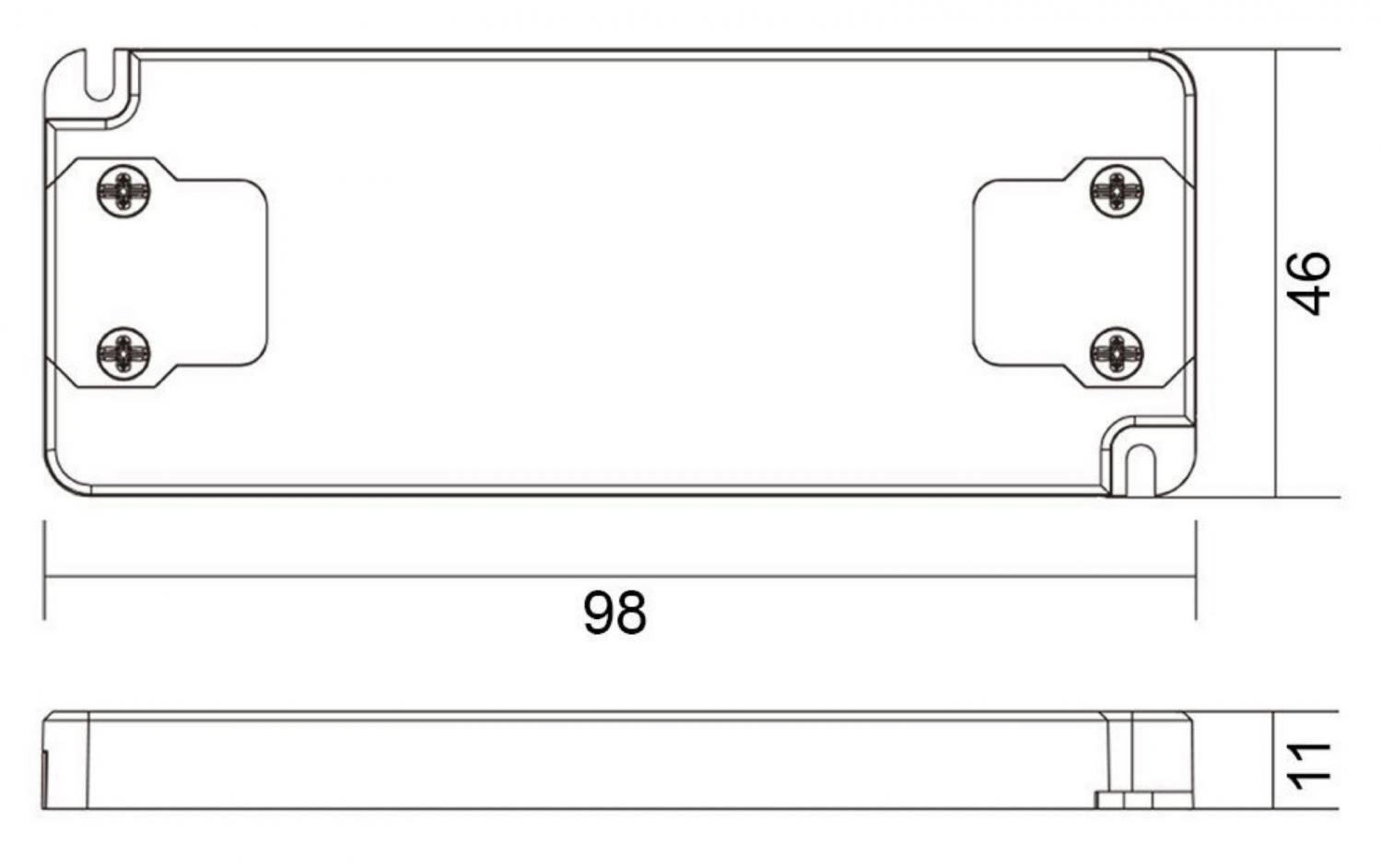 KapegoLED předřadník, UT24V/6W, konstant.napětí napětí: 220-240V AC/50-60Hz, výstupní napětí 24V DC, 0-0,25 A, 6W, plast, černá, IP 20, délka: 98 mm, šířka: 46 mm, výška: 11 mm, třída ochrany: II, provozní teplota: -20°C - +50°C, životnost: 30000 výška