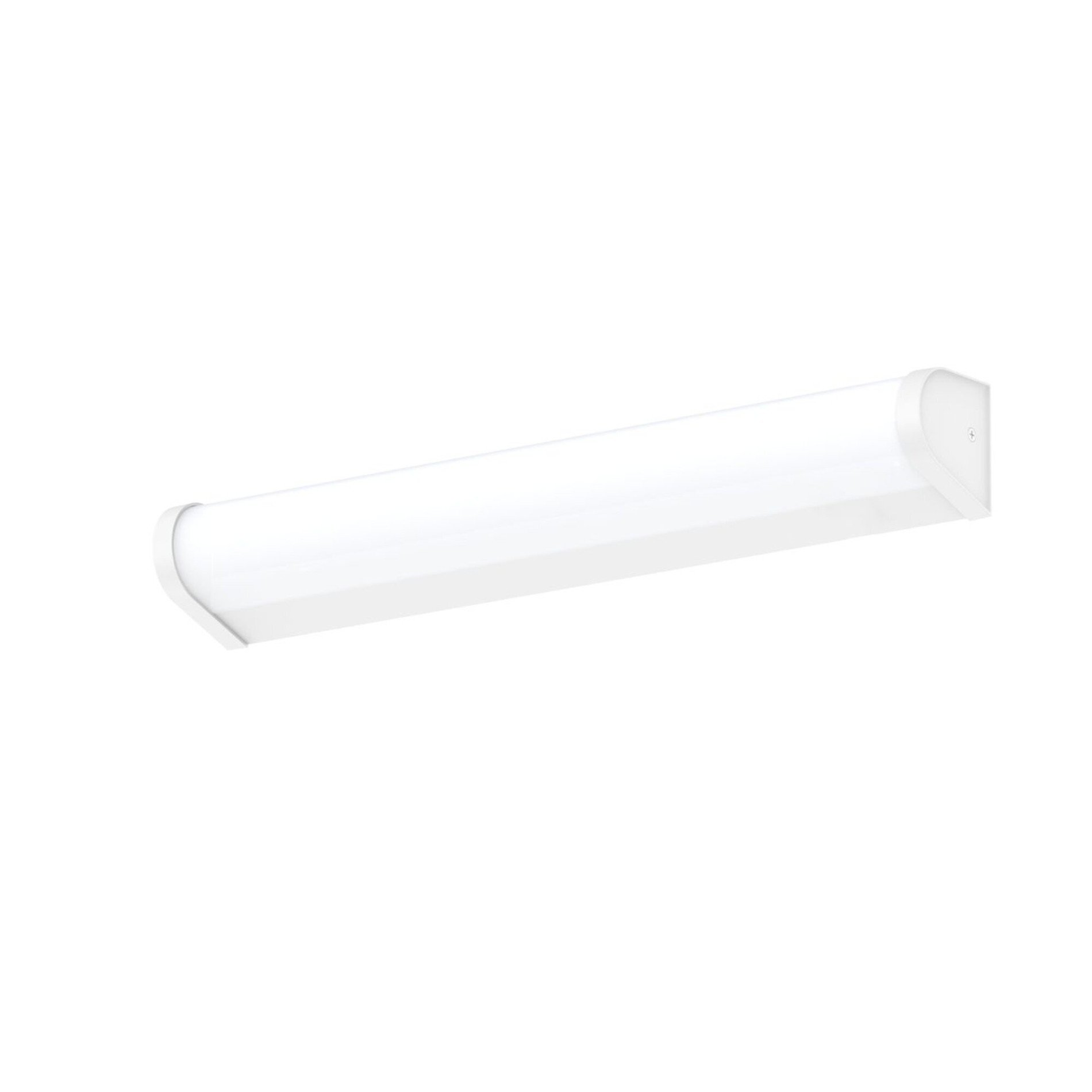 Svítidlo má jednoduchý, funkční tvar s jemně zaoblenými konci a čistou bílou povrchovou úpravou. Tělo je vyrobeno z hliníku, difuzor z opálového polykarbonátu zajišťuje rovnoměrné rozptýlení světla bez oslnění. Konstrukce je navržena pro povrchovou montáž, elektrické připojení je řešeno otevřeným vedením ve středu zadní části.