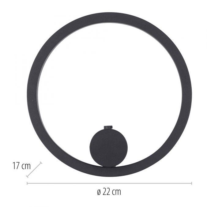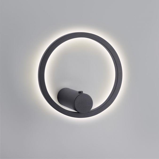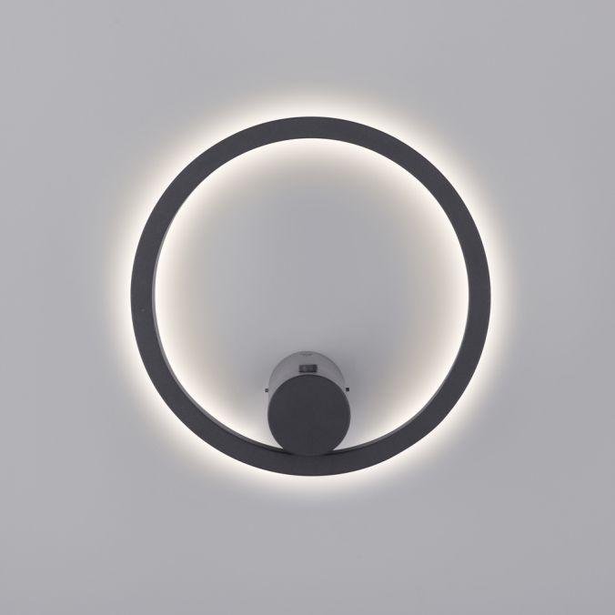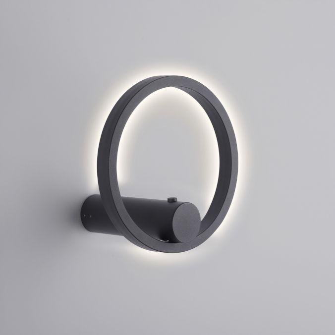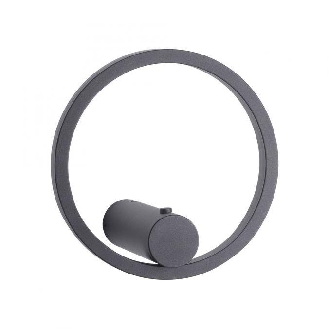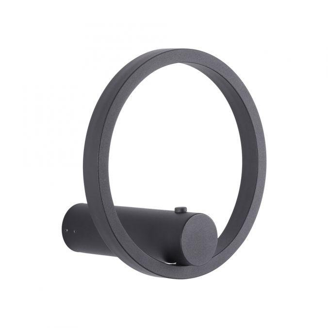 Svítidlo je tvořeno výrazným kruhovým rámem z železa v antracitové barvě. Minimalistická konstrukce s decentním válcovým tělem navazuje na současné trendy v interiérovém designu. Povrchová úprava v antracitu podtrhuje technický charakter a umožňuje snadné začlenění do moderních obytných nebo společenských zón.