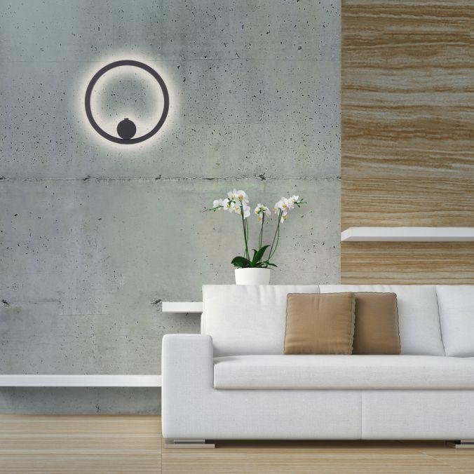 Kruhové nástěnné svítidlo s integrovaným LED zdrojem poskytuje teplé bílé světlo s příjemnou atmosférou. Díky možnosti stmívání pomocí dálkového ovladače a paměťové funkci je vhodné pro vytváření různých světelných scén v obytných i společenských prostorách. Hlavní roli zde plní jako dekorativní a atmosférické osvětlení, které podtrhuje architektonický charakter interiéru.