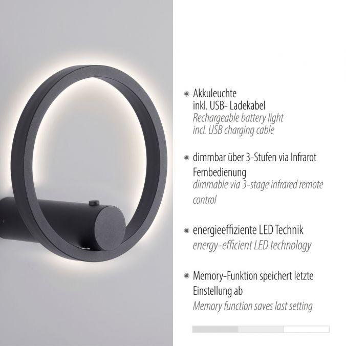LED nástěnné svítidlo ARCHIE antracit s dálkovým stmíváním a paměťovou funkcíKruhové nástěnné svítidlo s integrovaným LED zdrojem poskytuje teplé bílé světlo s příjemnou… Více