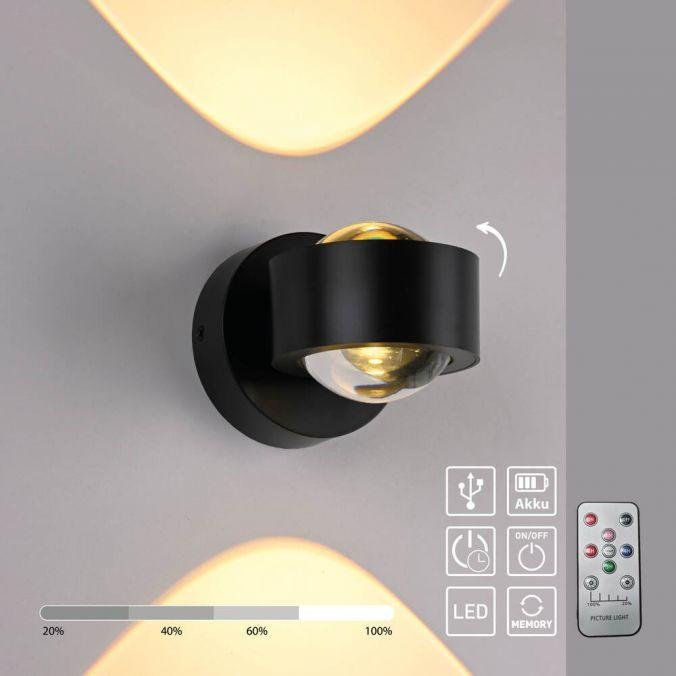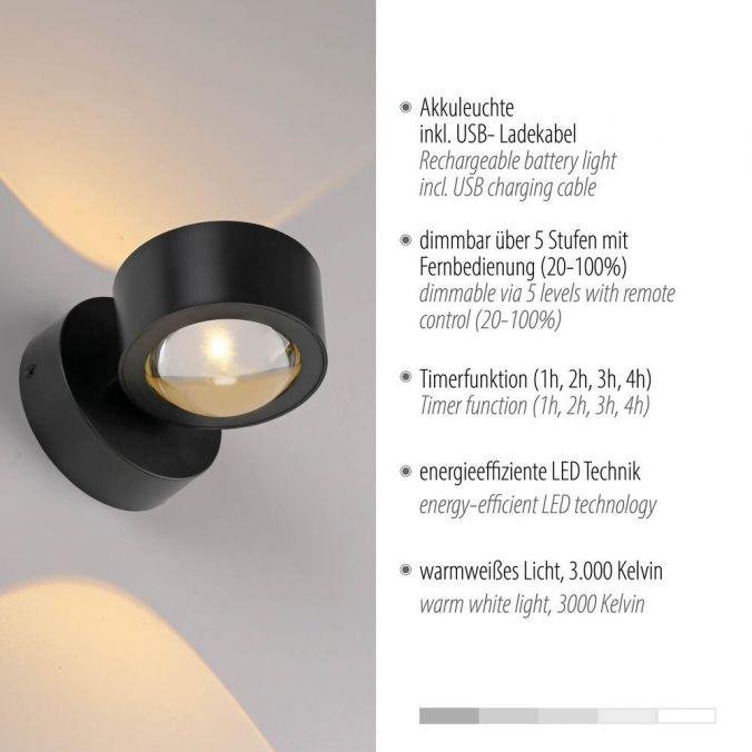LED nástěnné svítidlo na baterii AKKU-CHIA, černé provedení, 3000K
