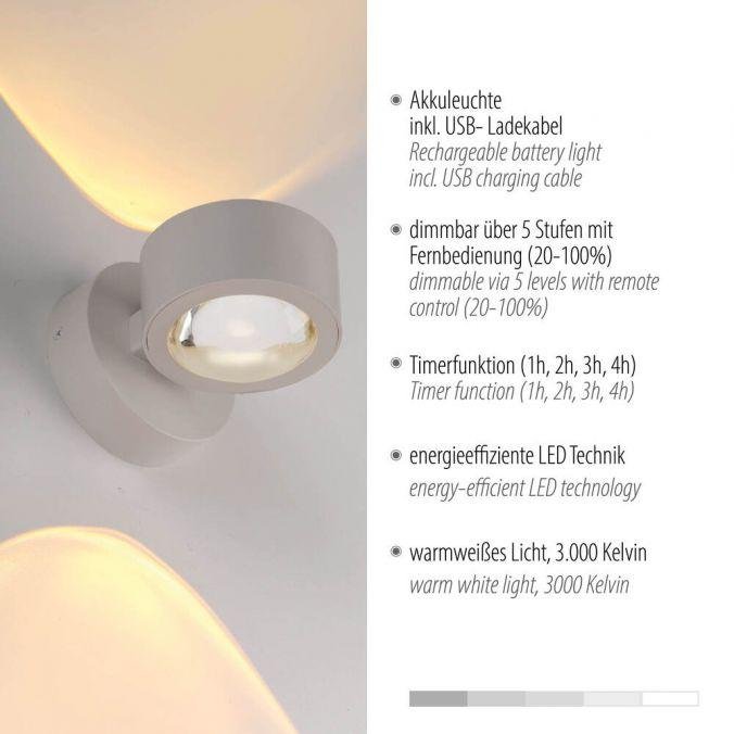 LED nástěnné svítidlo na baterii AKKU-CHIA, písková, 3000K, dálkové ovládání