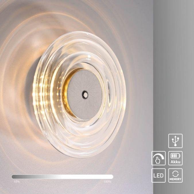LED nástěnné svítidlo na baterii AKKU-SONO, ocel, 3000K – dekorativní akcentní světlo s dotykovým stmíváním