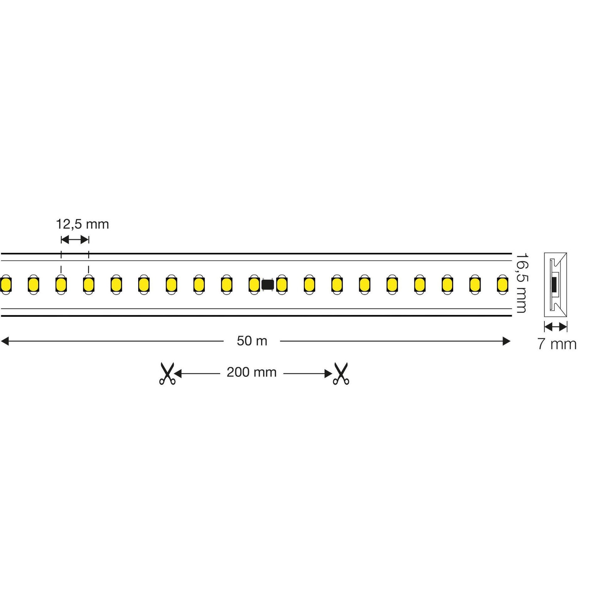 LED pásek 230V 8W/m 800lm/m 2700K Ra80 stmívatelný IP65 50m - TLG