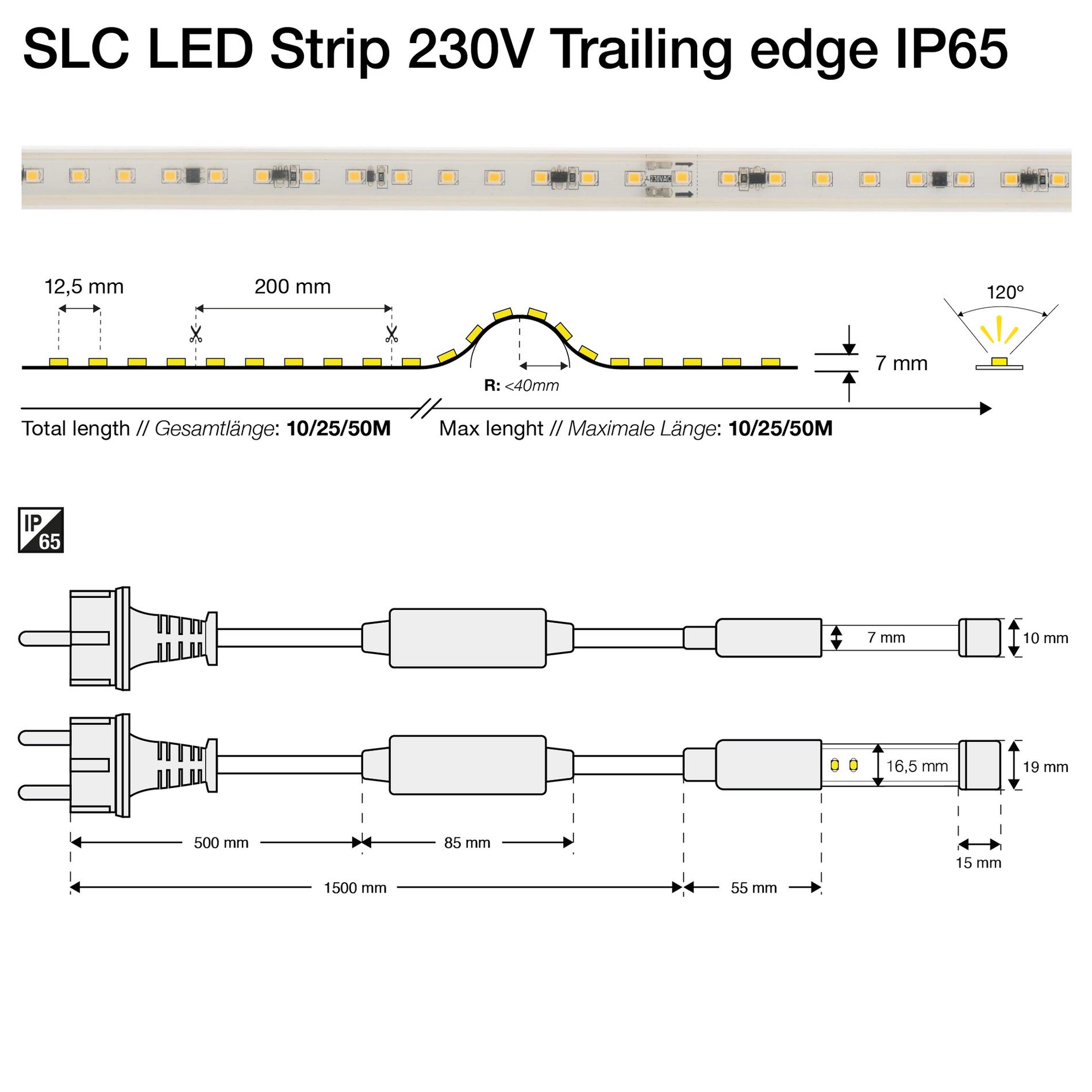 Kód / označení výrobce: SLC LED Strip 230V set, 8W/m, 900lm/m, 4000K, Ra>80, trailing edge, IP65, 10m
