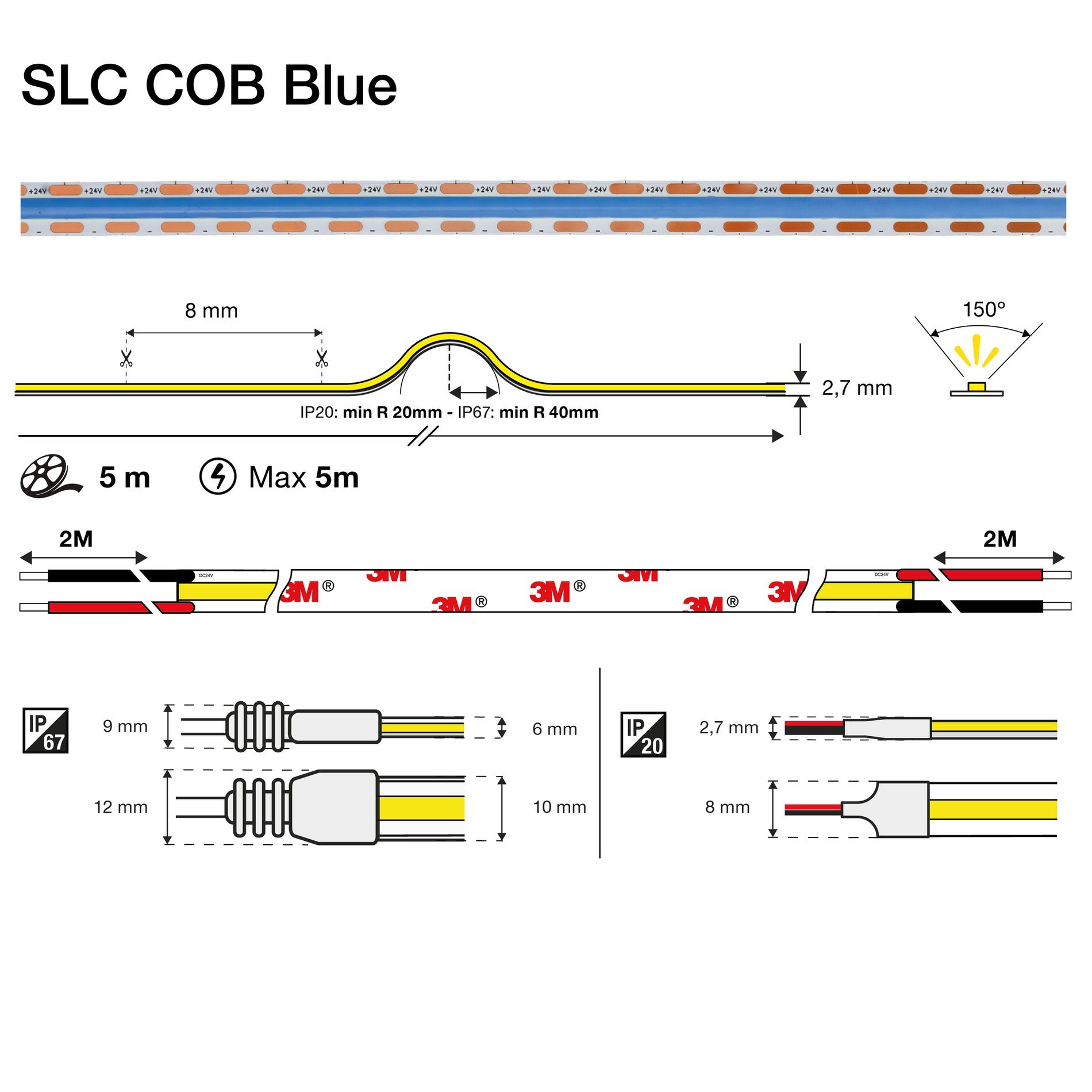 LED pásek COB barevný 12W/m 123lm/m modrá 24V IP67 5m - TLG