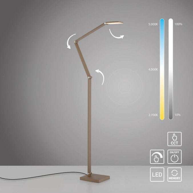 LED stojací svítidlo SAMSKY, bronzová, stmívatelné, nastavitelná výška, CCT nastavení teploty barvy, 2700-5000K - PAUL NEUHAUS