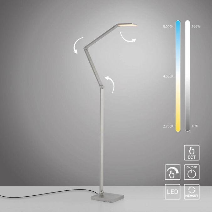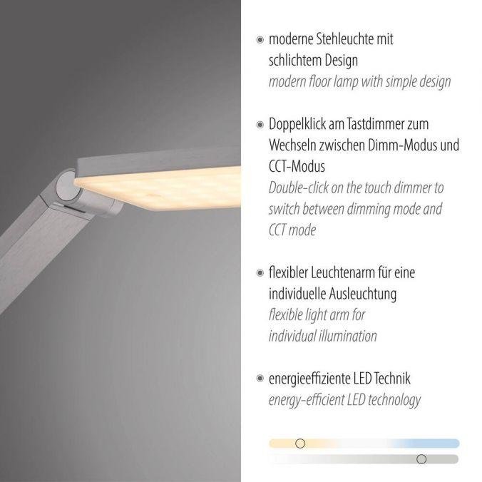 LED stojací svítidlo SAMSKY, stříbrná, stmívatelné, nastavitelná výška, CCT nastavení teploty barvy, 2700-5000K - PAUL NEUHAUS