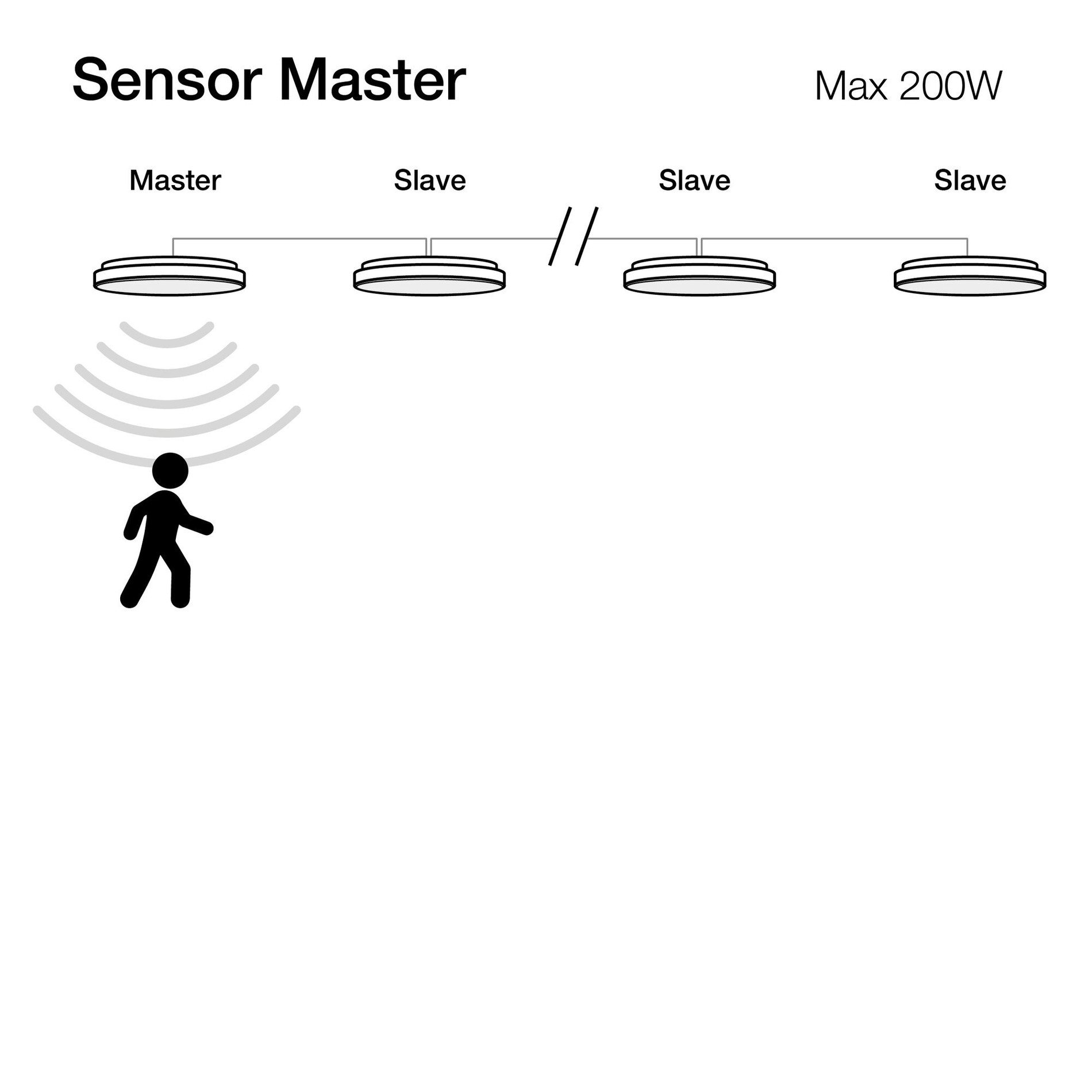 LED stropní svítidlo Omega S400 bílé 2689/3751lm 3000/4000K Ra80 MW pohybový senzor Master IP54 - TLG