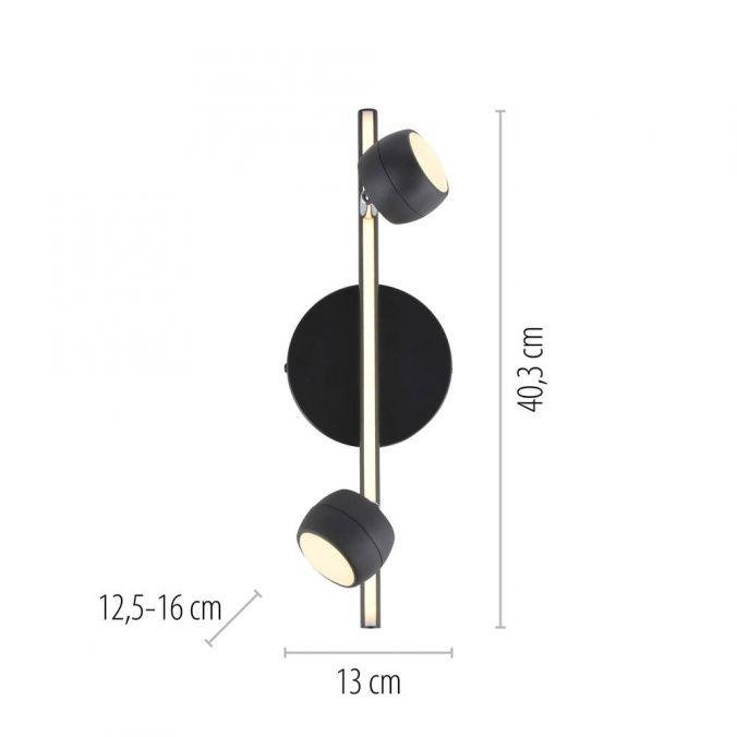 Svítidlo JARIK kombinuje dvě otočné a výklopné spotové hlavy s liniovým profilem, který je rovněž osazen LED zdrojem. Konstrukce je vyrobena z železa v černém matném provedení, což podtrhuje technický a současně decentní charakter svítidla. Minimalistický tvar s čistými liniemi umožňuje začlenění do moderních i funkčně pojatých interiérů.