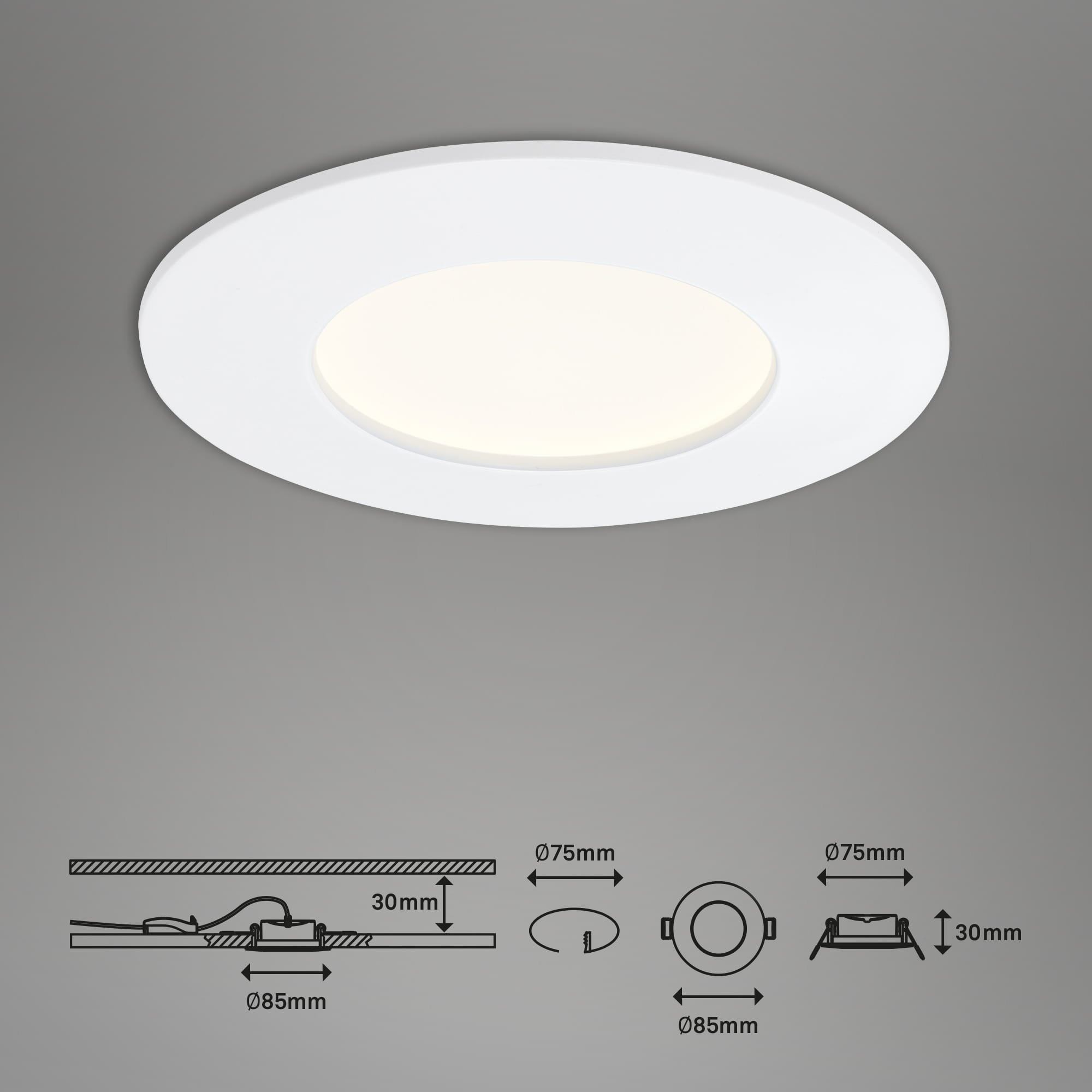 BRILONER LED vestavné svítidlo, Ø 8,5 cm, 6 W, bílé, IP44