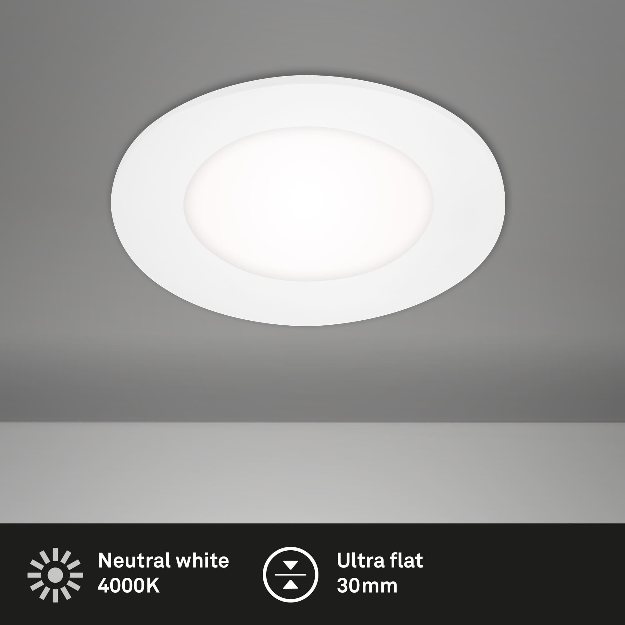Díky neutrální teplotě chromatičnosti 4000 K vytváří svítidlo příjemnou a přirozenou atmosféru vhodnou do obývacích pokojů, chodeb, kuchyní nebo kanceláří. Se světelným tokem 350 lm a úsporným příkonem 3 W poskytuje efektivní a rovnoměrné osvětlení, které je šetrné k vašemu zraku i spotřebě energie.