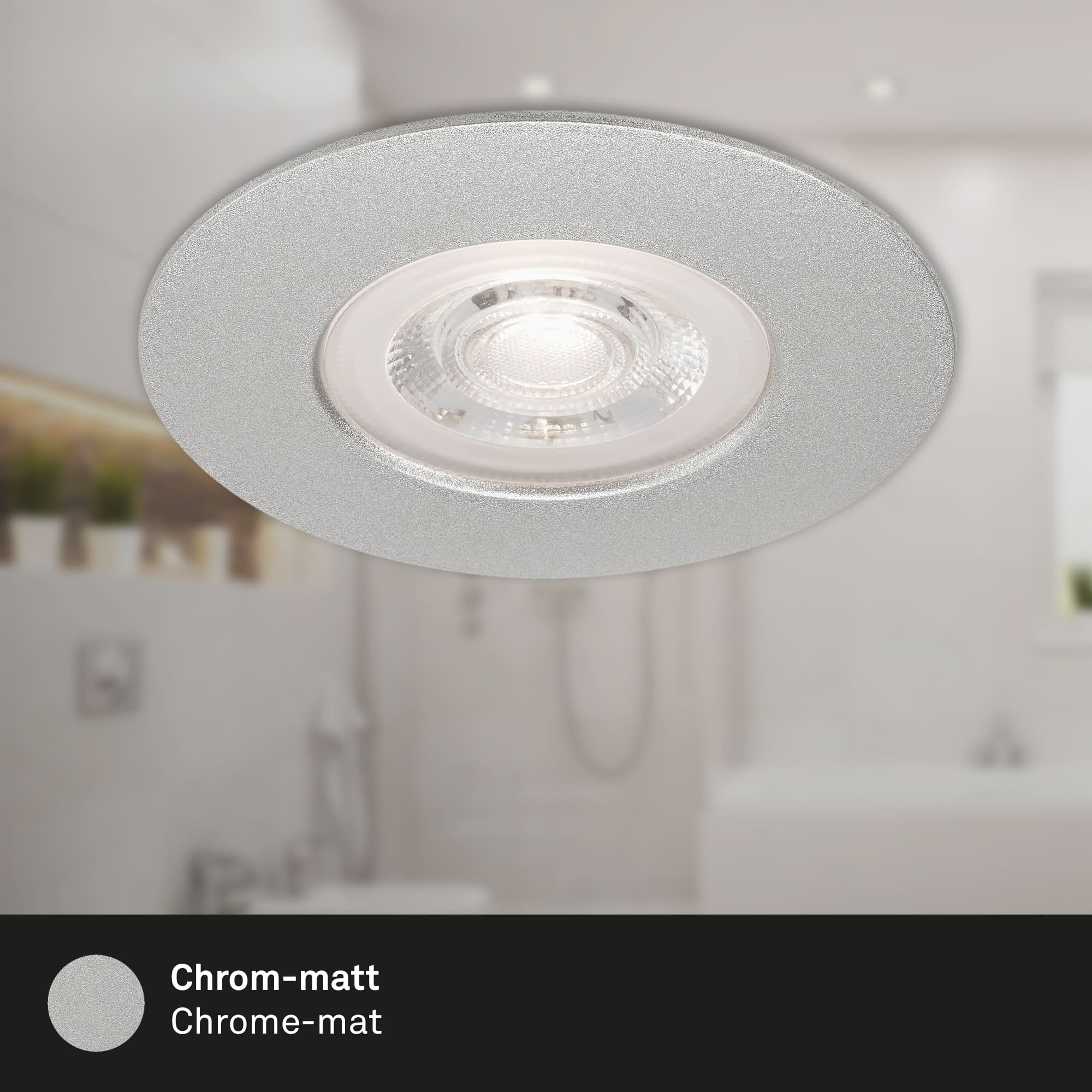 BRILONER LED vestavné svítidlo, průměr 9 cm, 4,9 W, matný chrom, IP44