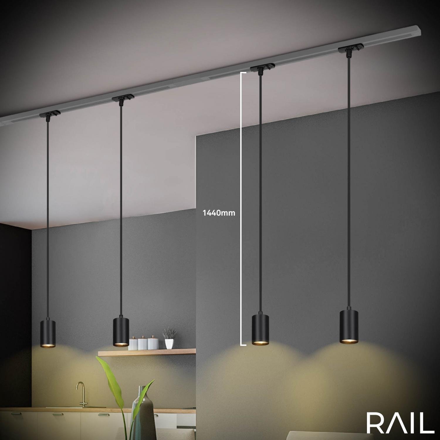 LED závěsné svítidlo GU10 lištový systém 230V – vysokonapěťový, moderní 145 cm, černé - BRILO