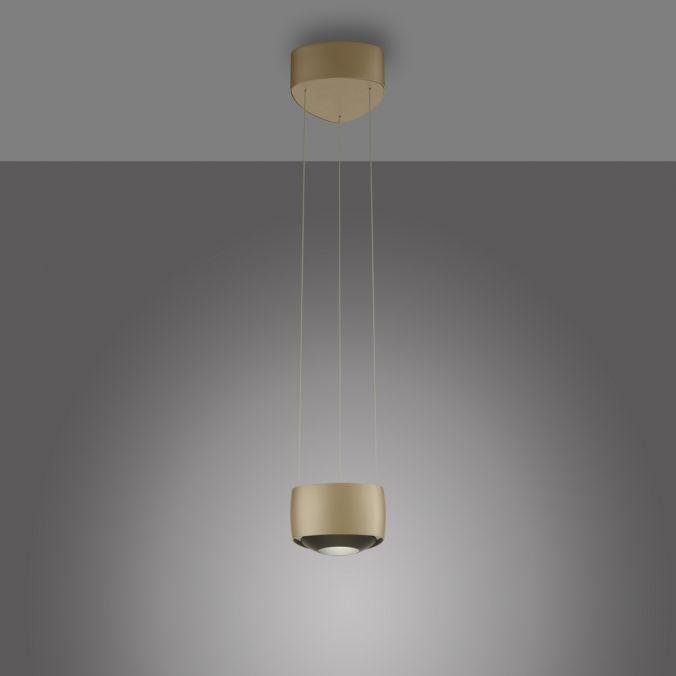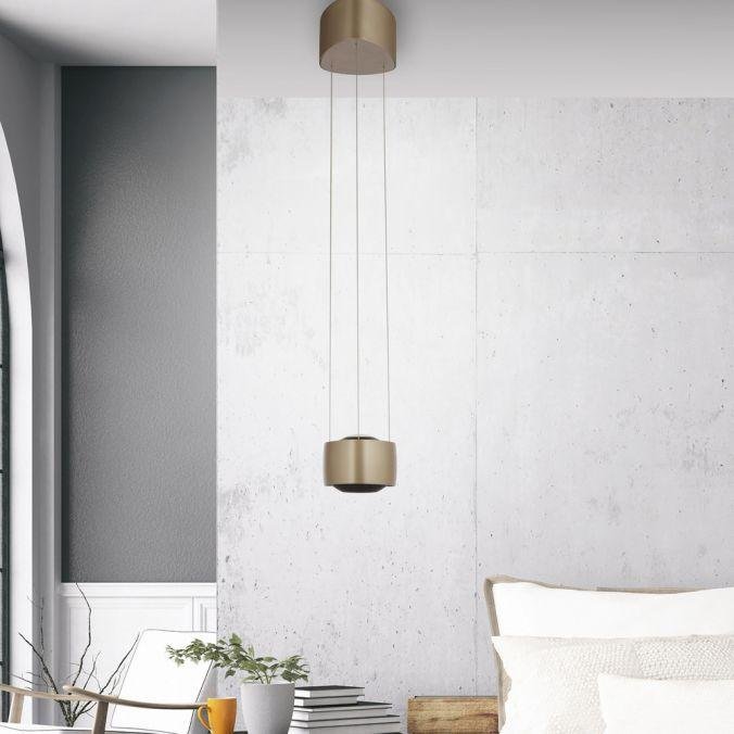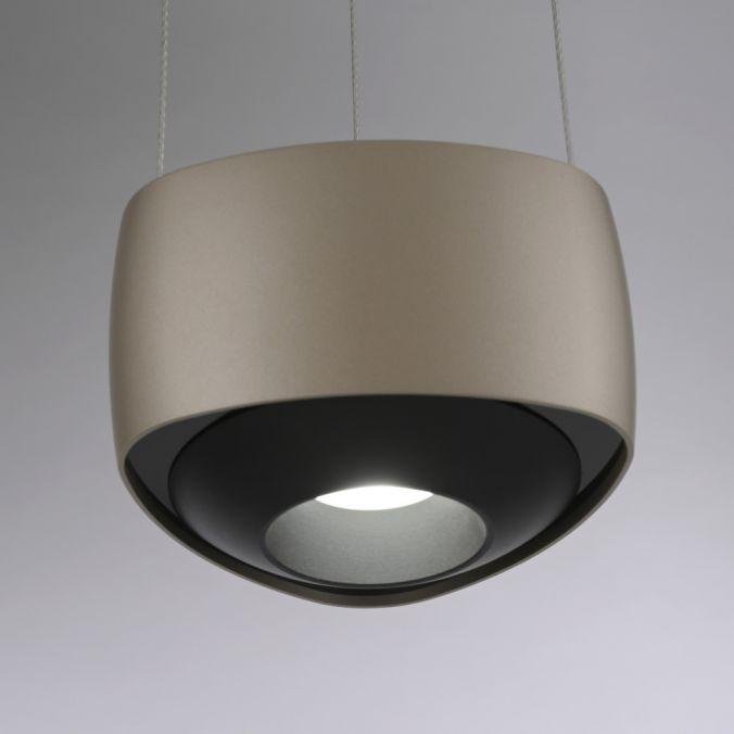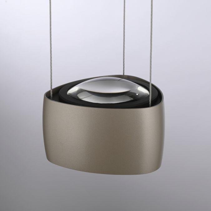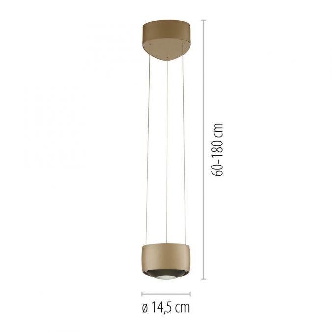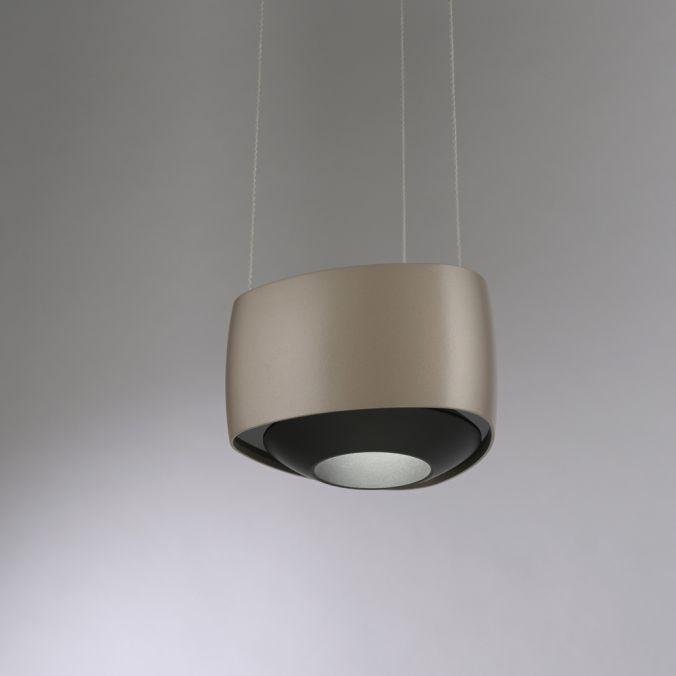 Konstrukce svítidla je tvořena hliníkovým tělem v bronzovém provedení. Minimalistický válcový tvar působí nadčasově a technicky čistě. Výšku zavěšení lze upravit díky integrovanému manuálnímu lift systému, což usnadňuje přizpůsobení svítidla konkrétní situaci nad stolem nebo v prostoru.