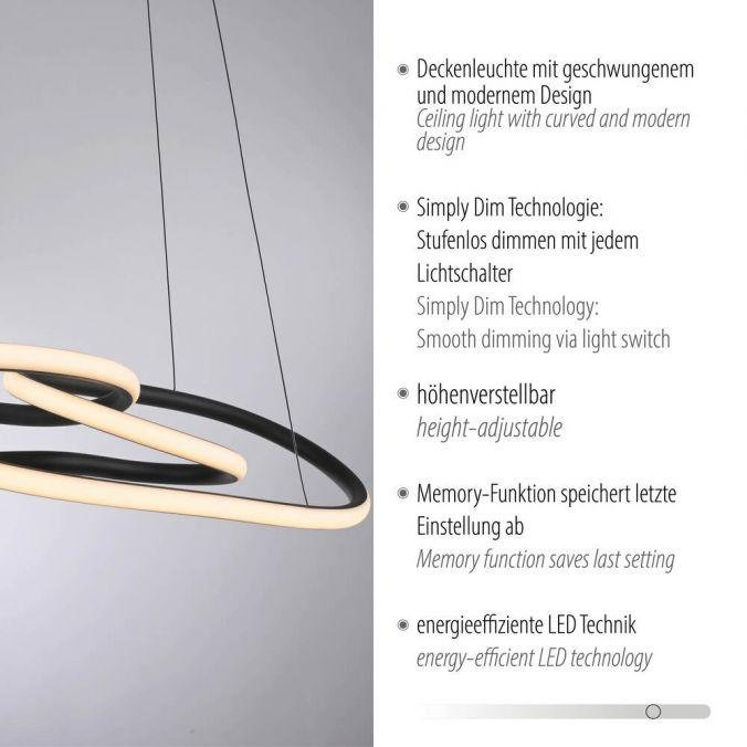 Kód / označení výrobce: LED závěsné svítidlo TWIST, černá, nastavitelná výška, paměťová funkce, SimplyDim, 2700K - PAUL NEUHAUS