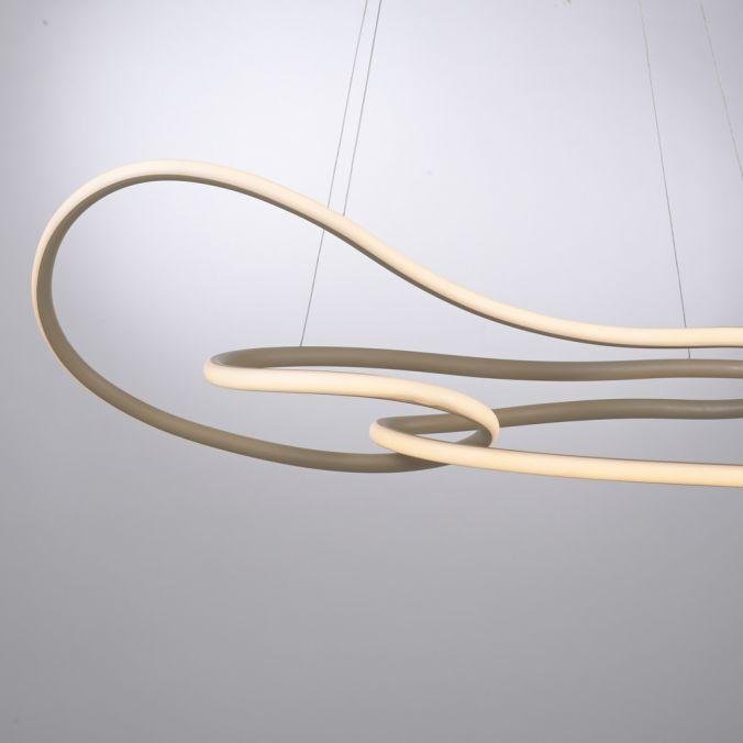 Svítidlo je tvořeno elegantně tvarovaným hliníkovým profilem v pískově béžovém provedení. Organicky zvlněná linie vytváří v prostoru dynamický a současně lehký dojem. Výšku zavěšení lze přesně nastavit díky systému s Reutlinger uzávěrem, což umožňuje přizpůsobení různým výškám stropů a typům interiéru.