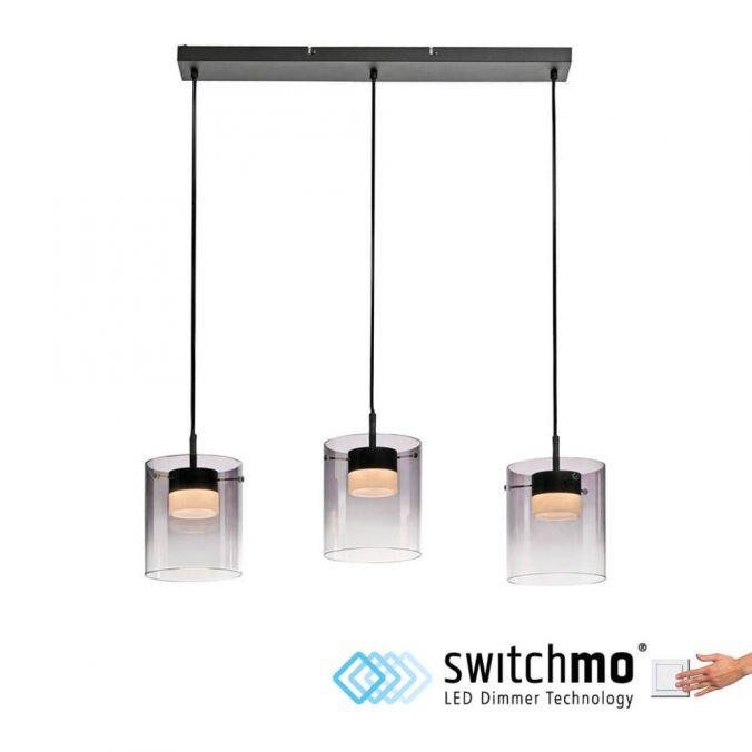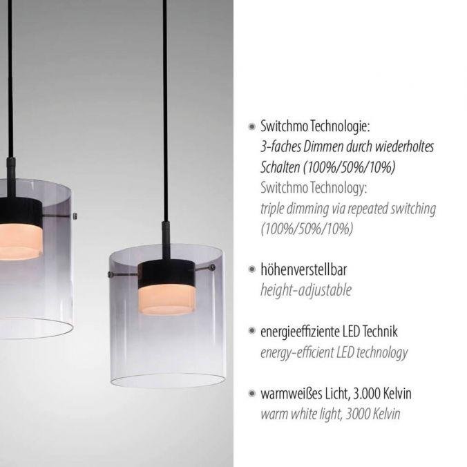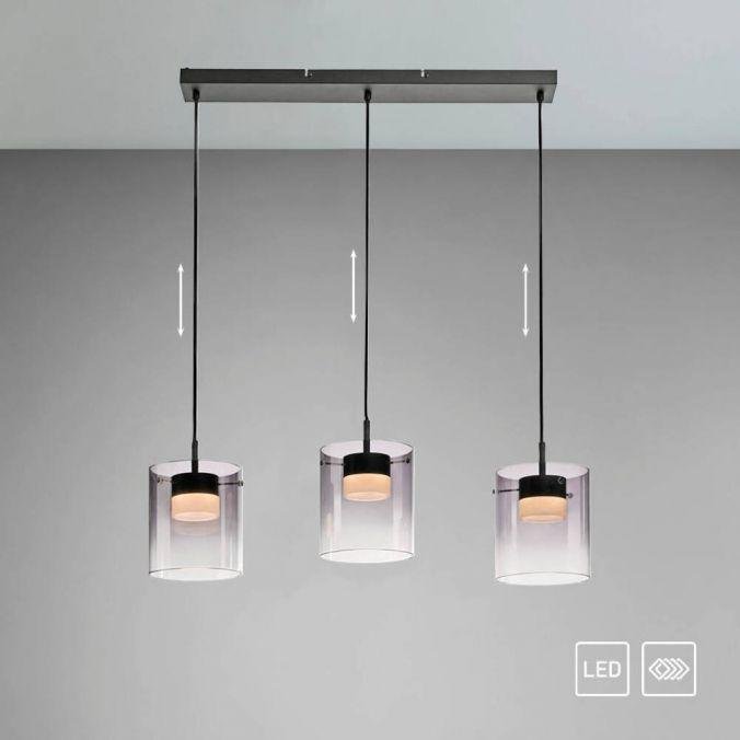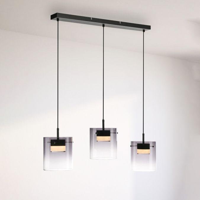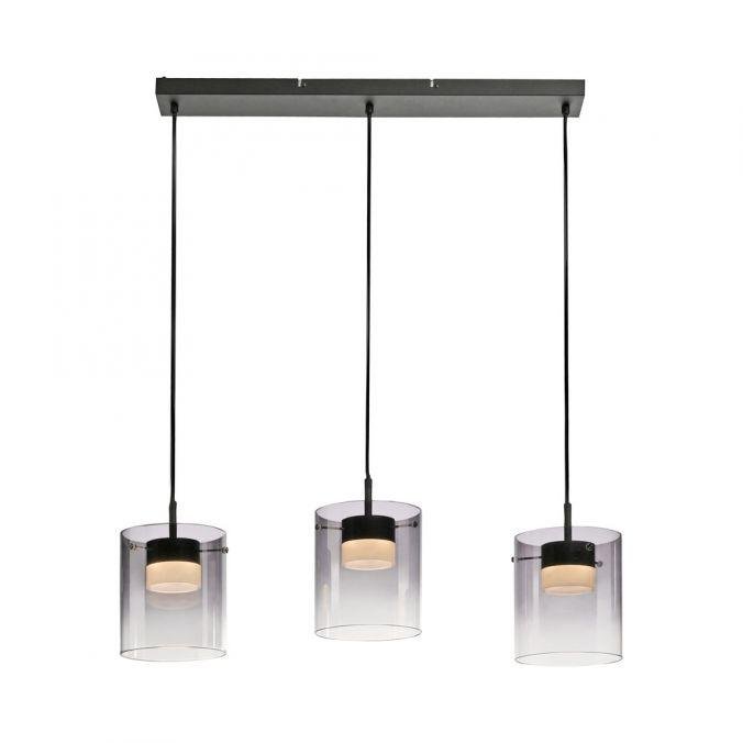 LED závěsné svítidlo tříramenné černé s kouřovým sklem, stmívatelné, 3000K