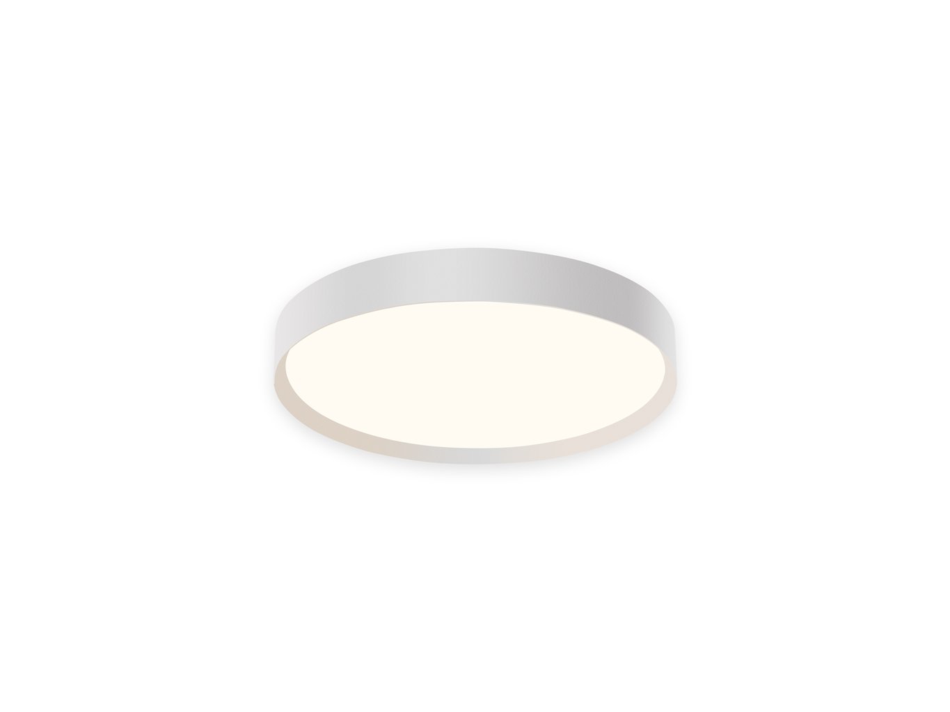 Kruhové svítidlo s průměrem 600 mm je vyrobeno z kovu v bílé barvě (RAL 9003) a je doplněno opálovým difuzorem z PMMA. Minimalistický tvar a čisté linie podporují univerzální využití v moderních interiérech, kde je kladen důraz na funkčnost a vizuální čistotu.