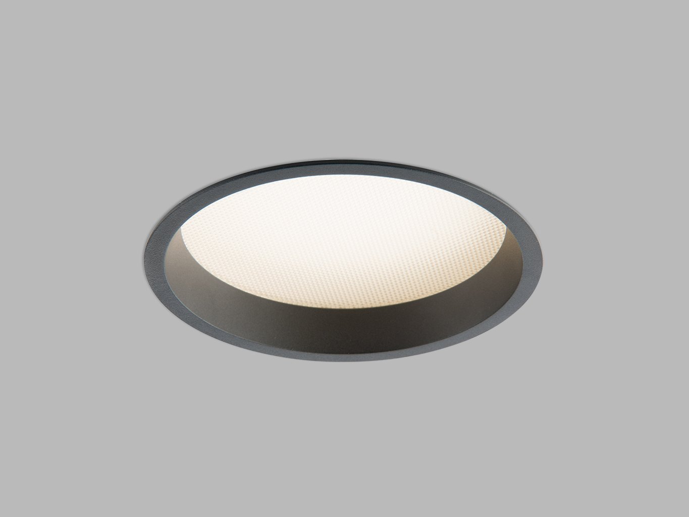 Svítidlo má čistý kruhový tvar s průměrem 176 mm a výškou 58 mm. Konstrukce je z hliníku v černé barvě (RAL 9005), optická část tvoří prizmatický difuzor z PMMA, který zajišťuje rovnoměrné rozptýlení světla a omezuje oslnění. Nízká montážní výška umožňuje instalaci i do podhledů s omezeným prostorem.