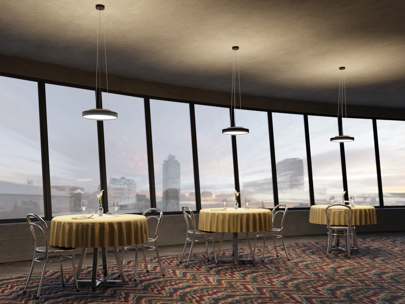Svítidlo poskytuje kombinaci přímého a nepřímého osvětlení - hlavní světelný tok 2400 lm směřuje dolů, dalších 600 lm vytváří jemný světelný efekt směrem ke stropu. Díky širokému vyzařovacímu úhlu 160° a opálovému difuzoru vzniká měkké, rovnoměrné světlo bez ostrých stínů. Volitelná teplota chromatičnosti (2700K, 3000K, 4000K) umožňuje přizpůsobení atmosféry prostoru. Vysoký index podání barev (CRI > 90) zajišťuje věrné zobrazení barev v interiéru. Ovládání DALI je vhodné pro systémovou integraci a profesionální řízení osvětlení, PUSH umožňuje základní stmívání.