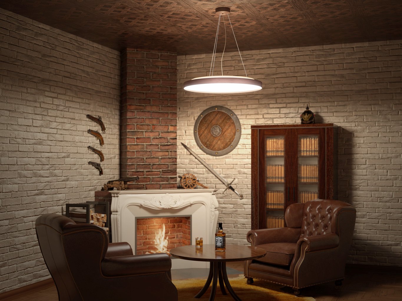 - Rozměry: Ø400 × 85 mm, délka zavěšení 2500 mm